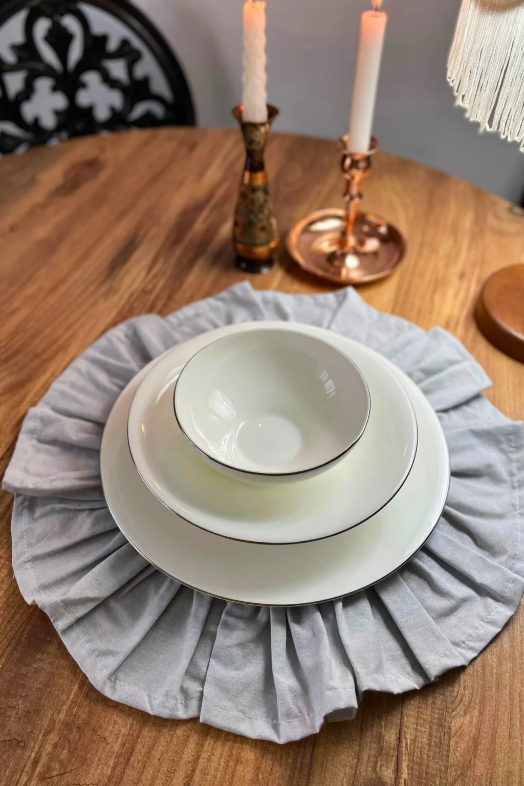Fırfırlı yuvarlak Amerikan servisi, hem günlük kullanıma hem de özel anlara uygun bir seçenek olarak masanıza zarafet katacak!