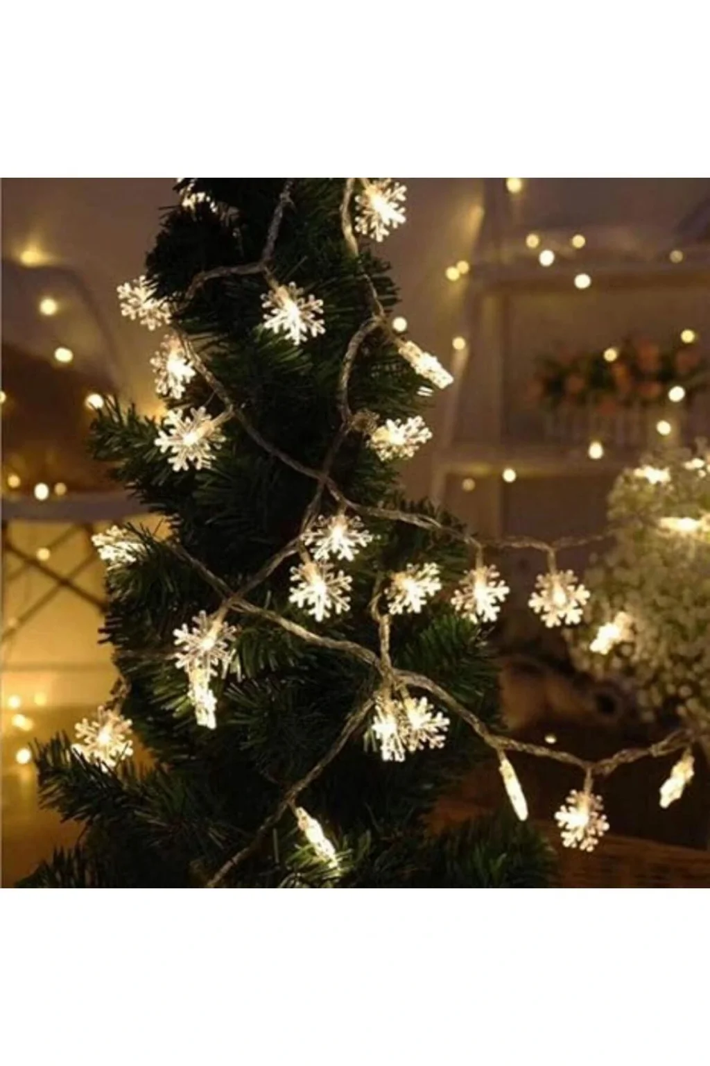 Genel Ürün Kar Tanesi Led Işık Yılbaşı Aydınlatma Dekorasyon Işık Dekorasyon 5 Metre 28 Kar Tanesi