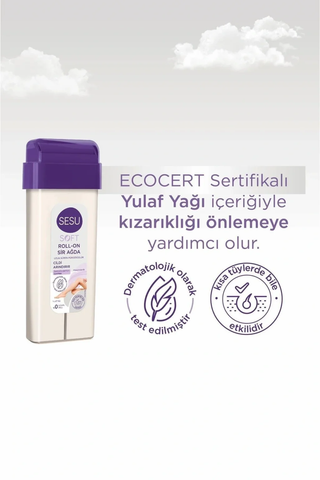 Sesu Soft Roll-On Sir Ağda 100 ml x 3 Adet Sesu Roll-on Sir Ağda, mükemmel ürün performansını evinize getiriyor.; ; Sesu Roll-on Sir ağdalar, farklı içeriklere göre özel olarak geliştirilmiştir.; ; Sir Ağda şeker içermez.; ; Kısa tüylerde bile etkilidir.; ; Düzenli kullanıldığında tüylerde azalma ve incelme görülür.; ; Sizi haftalar boyu süren pürüzsüz bir cilde kavuşturur.; ; Sesu Roll-on sir ağdayı, Sesu Roll-on Kolay Ağda makinesinde ısıtınız.; ; Ağdanın uygun ısı seviyesine geldiğini anlayabilmek için roll-on'un kolayca sürülebildiğini kontrol ediniz.; ; Kolayca sürülemiyorsa bir süre daha ısıtınız.; ; Uygun ısı seviyesindeki roll-on'u tüylerin çıkış yönü doğrultusunda sürünüz.; ; Ağda bezini yine tüylerin çıkış yönü doğrultusunda yapıştırınız ve ağda bezini cildinizin üzerinde birkaç kez ovunuz.; ; Bir elinizle cildinizi gergin tutup diğer elinizde bezi ani ve tek bir hareket ile tüylerin çıkış yönünün tersine doğru, cildinize paralel olarak çekiniz.; ; Ağda işlemini bitirdikten sonra cildinizi Sesu Sir Ağda Temizleme Mendili ya da Sesu Sir Ağda Temizleme Yağı ile temizleyiniz.