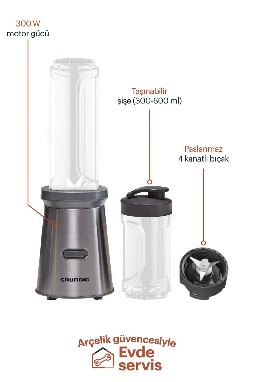 KB 4134 TI Inox Kişisel Blender GRUNDIG Grundig KB 4134 TI Inox Kişisel Blender 300 W motor gücü sayesinde birbirinden lezzetli smoothieler, meyveli sütler, ayran ve daha bir çok karışım hazırlamanızı sağlayarak evdeki yardımcınız olur. ; 4 kanatlı paslanmaz çelik bıçakları sayesinde sert malzemeleri bile kolaylıkla parçalar Dakikada 22.000’e yaklaşan devir sayısı Kırılmaz, koku bırakmaz, 300 ml ve 600 ml iki adet taşınabilir tritan şişe Şişeler ve kapakları bulaşık makinesinde kolaylıkla yıkanabilir Yıllara meydan okuyan paslanmaz Inox gövde;