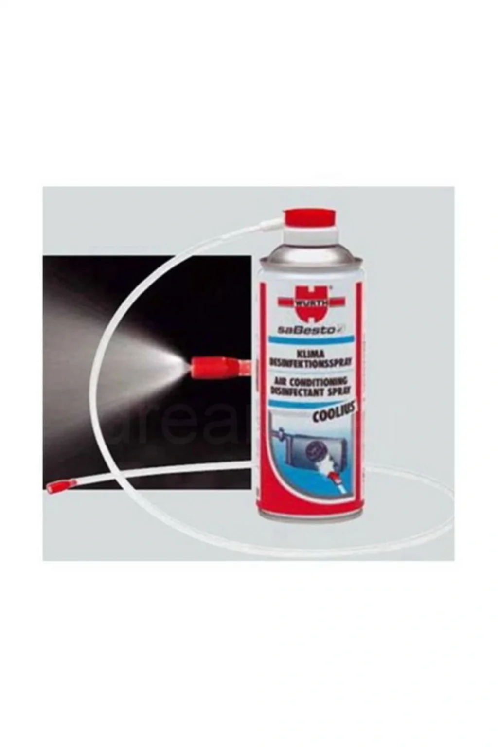 Würth Klima Temizleme Spreyi 300 Ml. ; Made in Germany 04893764 Ürün Özellikleri: . ; Kod: 04.893764 . ; Dezenfekte eder, temizler, korur. ; Avantajlarınız: . ; Çimlenme, bakteri, mantar ve küfü kesin olarak yok eder. ; . ; Hoş olmayan kokuları etkili şekilde giderir. ; . ; Bakterilerin ve diğer mikroorganizmaların yol açabileceği solunum yolu problemlerini ve alerjiyi önler. ; . ; Püskürtme başlığı ve ekstra uzun hortumu sayesinde, klima sisteminin ısı düzenleyicisine doğrudan uygulama imkanı sağlar. ; Avantajlarınız: . ; Kirlenmenin kaynağında temizlik ve dezenfeksiyon sağlar, etkisi uzun süre devam eder. ; . ; Kalın ve yağlı kir tabakalarını da derinlemesine püskürtme özelliği sayesinde rahatlıkla yok eder. ; . ; Etkisi, bağımsız bir enstütü tarafından test edilerek onaylanmıştır. ; Avantajlarınız: . ; Kanıtlanmış bakteri tohumlarını yok etme özelliği. ; . ; 5 dakika etki süresi içinde %1 OO'lük tohum yok etme etkisi. ; . ; AOX içermez. ; Avantajlarınız: . ; Yerel kanalizasyo sistemlerinde problem çıkarmaz, toprağa ve sulara zarar vermez. ; . ; Temizleme etkisi ile ilgili incelemeler DGHM ( Alman Hijyen ve Mikro Biyoloji Kurumu) tarafından kimyasal temizlik test ve değerlendirme kriterlerine göre gerçekleştirilmiştir. ; Uygulama: . ; Klima tesisatını ve havalandırmayı kapatın. ; . ; Püskürtme hortumunu kondens suyu çıkış borusuna yerleştirin (bkz. ; Resim). ; . ; Kutunun yarısını (yaklaşık 30 sn. ; kadar) püskürtün. ; Kutu içeriği yaklaşık 2 kullanım için yeterlidir. ; . ; Çözülen kirler sorunsuz olarak akıp gider. ; . ; Uygulamadan sonra klimayı yeniden çalıştırmak için en az 10 dakika bekleyiniz. ; Öneri: Yılda en az 1 kez tüm klima sisteminin temizlenmesini öneririz.;