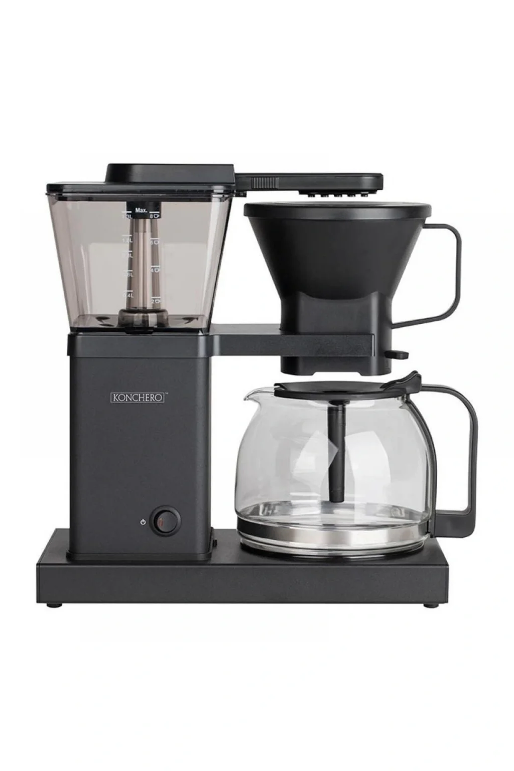 Konchero Aluminyum filtre kahve makinesi duşlama sistemli ; Konchero preciso alüminyum filtre kahve makinesi kapasite: 1.3 litre (8 fincan) ; Alüminyum alaşım gövde ; 90°c- 96°c ideal demleme sıcaklığı ; Duşlama sistemi (11 delikli duşlama başlığı) ile geliştirilmiş demleme performansı ; Güçlü ve sabit ısıtıcı ile 6 dakikada demleme ; Infüzyon demleme modu ; Ayarlanabilir demleme hızı ; Damlama engelleme fonksiyon kolu ; Transparan su tankı ; Borasilikat cam pot ; 40 dakikada otomatik kapanma özelliği ; Kolay temizlenebilir tasarım ; 5 adet x4 filtre kağıdı ; 220 / 240 v, 50 / 60hz, 1.500 w ; Ölçüler (exdxy): 150x300x340 mm ; Türkçe kullanma kılavuzu ;