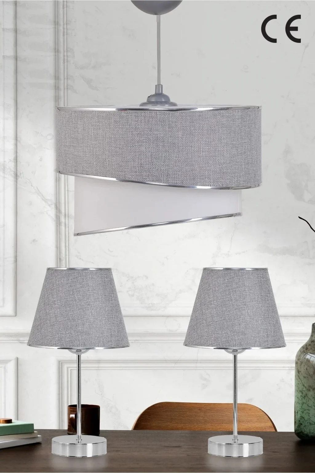 Genel Ürün Kumaş Galaksi Modern Pasta Tekli Ve 2 Li Gold Abajur Seti