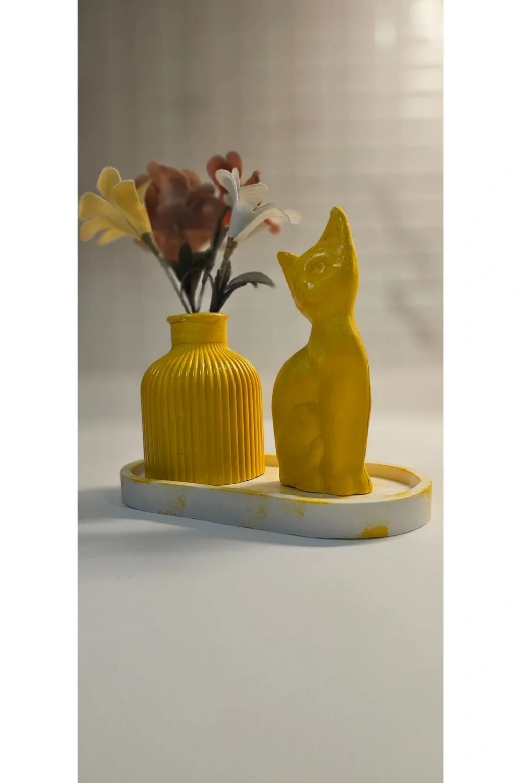 %100 El Yapımıdır ve Taş Tozundan Üretilmiştir. ; Ölçüsü: Tabak 17,5x9 cm,Vazo:9,5x6,6 cm,Kedi Figür:13,5x5,5 cm;Renklendirme Üretim Sırasında Yapıldığı İçin Her Ürünün Deseni Farklı Oluşmaktadır. ; Dış Yüzeyi Verniklenmiştir ve Suya Karşı Dayanıklıdır. ; Yüzeyinde Üretim Sırasında Oluşan Küçük Kabarcık Delikleri Bulunabilir. ; Yumuşak Bez İle Temizlenebilir. ;