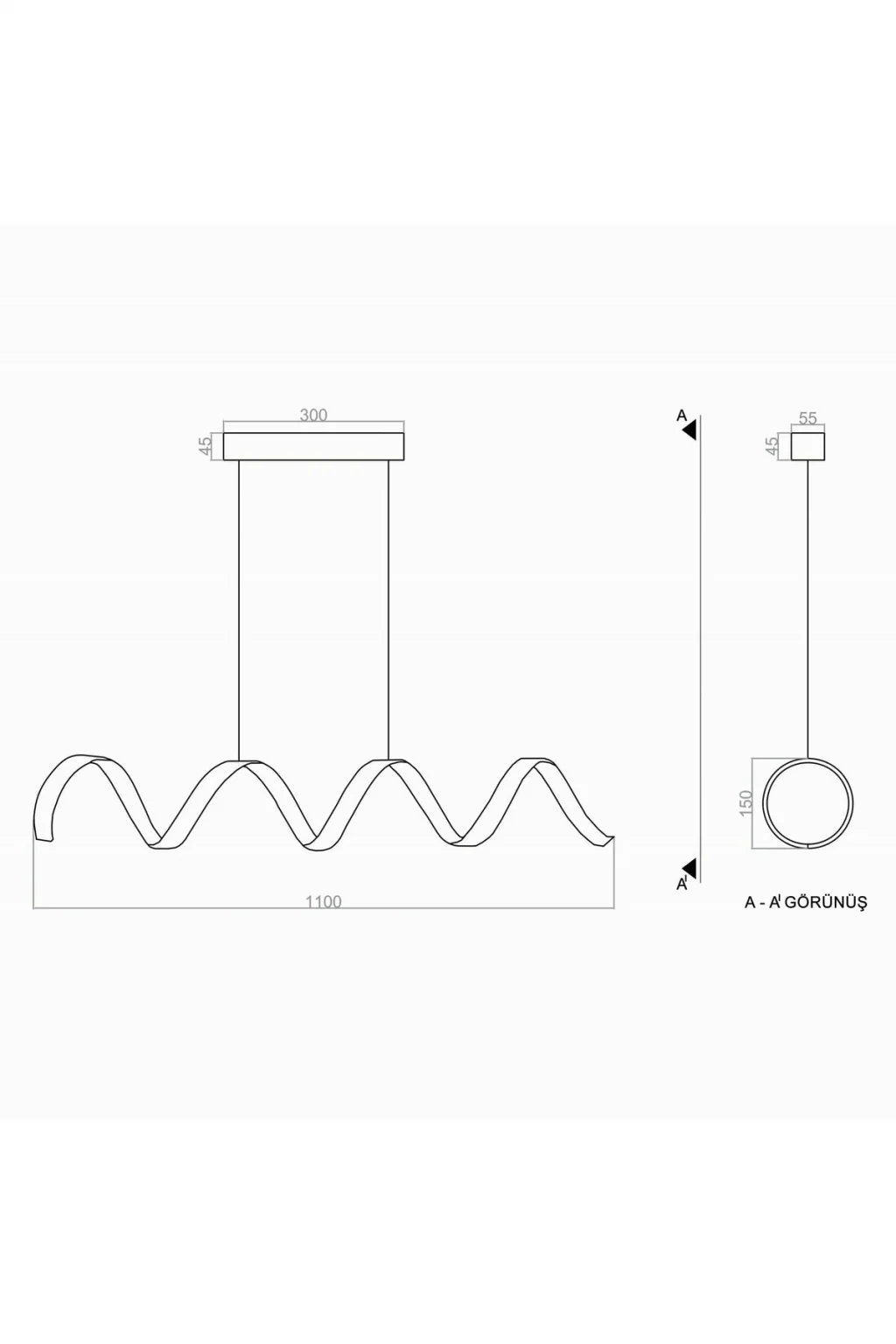Azami üretim süresi 5 (beş) iş günüdür.; ; Tüm ürünlerimiz Üretim Kaynaklı hatalara karşı 2 (iki) yıl garantilidir.; ; Lütfen kargodan ürünü teslim almadan önce getiren yetkili ile birlikte gelen ürünün hasar durumunu kontrol ediniz.; Hasarlı ürün teslim almayınız.; ; Hafiftir ve kolay monte edilir.; ; Ürünümüzün materyali alüminyumdur.; ; Sarkıt boyu (max:100cm) kolayca ayarlanabilir.; ; Boya elektrostatiktir.; Solmaz, deforme olmaz, temizlik kimyasallarından etkilenmez.; Ürünlerimiz siparişinize özel olarak özenle üretilmektedir.; Değerli yorumlarınızı bekleriz.; Enerji Verimi A+ Ürün Grubu Sarkıt Kullanım Yeri Ofis, Yemek Odası, Ada Üstü Aydınlatma Alanı Max.; 14 m2 Ebat 120 cm Işık Yönü İçe Işık Profil Ölçüsü 35x7 mm Güç 54 Watt Lumen 4320 lm LED Tipi Sabit Akım Güç Kaynağı Elektronik LED Driver Çalışma Voltajı AC 220V/ 50-60Hz DIM Özelliği+(- Yoktur En 30 cm Boy 110 cm Yükseklik 100 cm ;