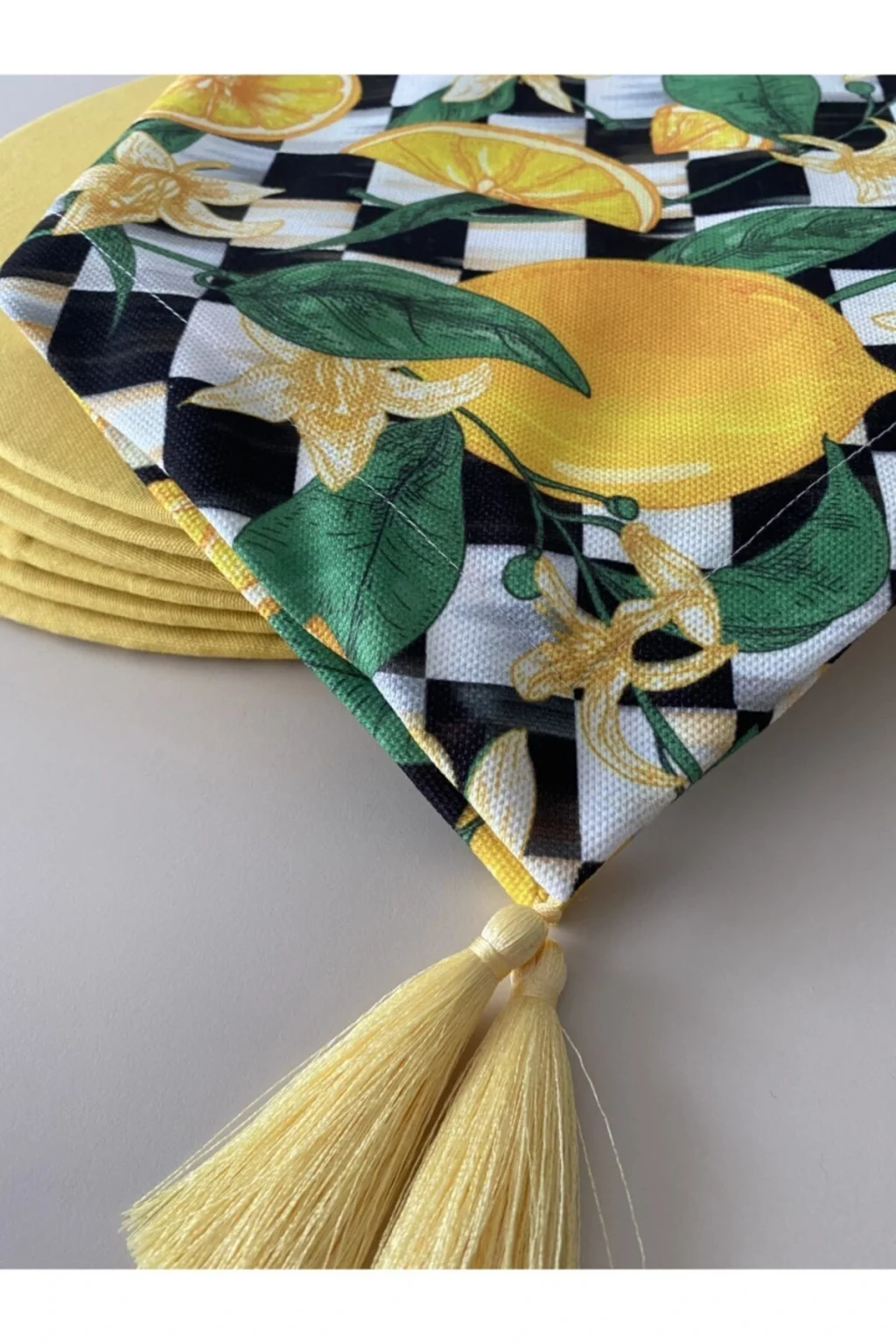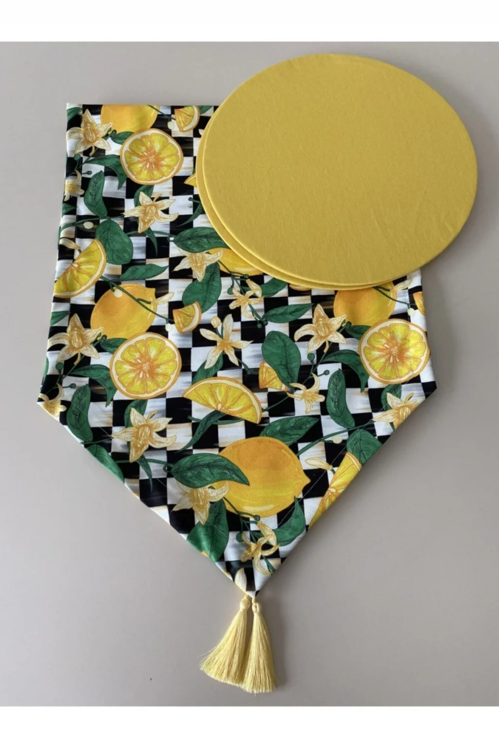 Ürün içeriği: 1 adet runner (runnerlar digital baskılı kumaştır. ; 30 derecede makinede yıkanabilir.Tersten ütülenmesi gerekmektedir.) 2 adet supla ( 35 cm çapında 3 mm kalınlığında mdf dir. ; Supla kılıfları 1.Sınıf premier dokuma kumaş ve lastiklidir. ; Istenildiği zaman çıkartılıp yıkanabilir ve tekrar takılabilir. ; Runner kumaşı su geçirir, leke tutmaz ve yıkanabilir supla ise duck keten kumaş su geçirmez leke tutmaz ve yıkanabilen kumaşlardır;