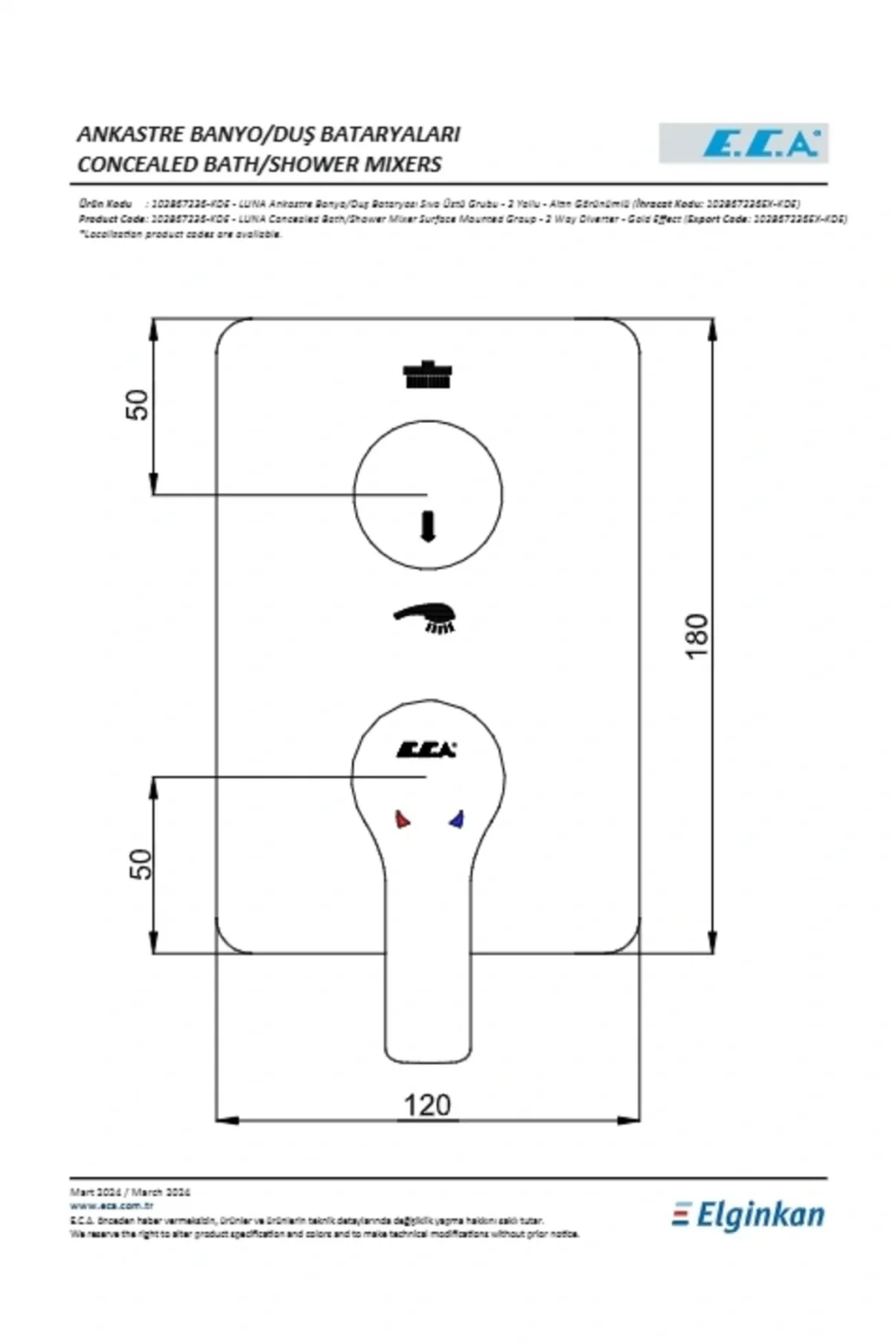 ECA Luna Ankastre Banyo Bataryası Sıva Üstü 2 Yollu