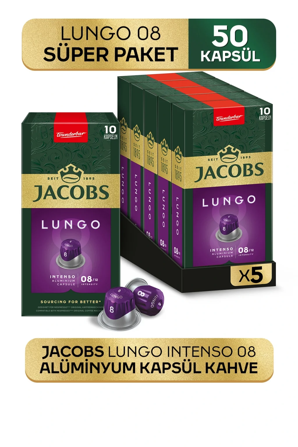 JACOBS - Lungo 8 Intenso - Yüksek Yoğunluk - Keskin ve Yoğun- Espresso Kapsülleri - 10 adet "KESKİN VE YOĞUN espresso lezzetinin tadını çıkarın.; Keskin tatları ve ağızda bıraktığı zengin, güçlü hissiyat ile öne çıkankompleks bir karışımdır.; " ÖZENLE SEÇİLEN yüksek kaliteli çekirdekleri, doyurucunotalara ve zengin, unutulmaz aromalara dönüşür.; JACOBS KAPSÜL KAHVELERİ, Nespresso ®* kahve makinesi ileuyumludur.; * Ticari marka, Jacobs DouweEgberts ile ilgisi olmayan üçüncü bir taraftır.; İPEKSİ DOKU: Zengin ve pürüzsüz yapısıyla, yumuşak bir kahvedeneyimi yaşatır.; Evinizin konforunda bu kadifemsi lezzetin tadına varın.; RAINFOREST ALLIANCE/UTZ CERTIFIED™ COFFEE, kahve çekirdeğitarlalarındaki sosyal ve çevresel koşulların iyileştirilmesine yardımcı olanetik bir katılımdır.; Jacobs alüminyum kapsüllerimiz Nespresso®* Original kahve makineleri ile uyumludur.; İstisnai olarak, 25 Temmuz 2016 sonrasında satın alınan U®, Umilk® , Expert® *, Vertuo®, Expert&Milk®, Prodigio® ve Prodigio&Milk® modellerinde kullanılamamaktadır.