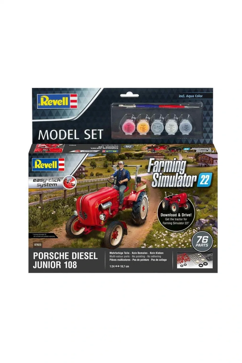 Revell Maket Özellikleri Junior 108, 50'li yılların sonlarına ait gerçek bir traktör efsanesidir ve bu nedenle Porsche'nin spor arabaların yanı sıra daha gerçekçi teknolojiyi temsil ettiği bir dönemden gelmektedir.; Traktörün hayranları artık onu yalnızca inşa etmekle kalmıyor, aynı zamanda Farming Simulator (ayrı satılır) ile sanal olarak birlikte hareket ettirebiliyor.; Kit, traktörün ücretsiz olarak indirilebileceği ve daha sonra oyunda kullanılabileceği bir kod içerir.; Farming Simulatör özel indirme kodu. (İndirme ücretsizdir - Farming Simulator ayrıca satın alınmalıdır.) ; Porsche Traktör.; Ayrıntılı Motor Yarıları.; Hareketli Motor Kaputu.; Temel boyalar ve fırça dahildir.; Yenilikçi kolay tıklama sistemi kullanan bu modelle hızlı başarı garanti edilir: Çok renkli, hassas bir şekilde üretilmiş bileşenler, birlikte verilen çıkartmalarla süslenebilen sağlam bir model oluşturmak için basitçe bir araya getirilir.; Teslimat Kapsamı | Plastik model seti (monte edilmemiş) - Resimli, çok dilli montaj talimatları - Çıkartmalar - Temel renkler (Revell Aqua Color) - Fırça - Farming Simulatör özel indirme kodu : Porsche traktör.; Uzunluk | 107 mm.; Ölçek | 1:24.; Parça Sayısı | 76.; Yaş Grubu | +10.; Dikkat | 8 yaş altı çocuklar için uygun değildir | Suda çözünen boyalar içerir | Sadece yetişkinlerin gözetimi altında kullanılmalıdır | Kullanım kılavuzunu kullanmadan önce çocuğunuzla birlikte okuyun, burada yer alan talimatlara uyun ve kılavuzu elinizin altında bulundurun.; Maket Aksesuarları İçin Tıklayınız