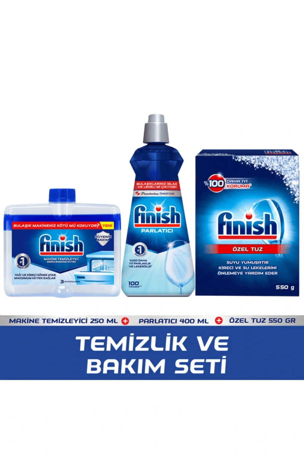 Kirli bir bulaşık makinesi size aradığınız ışıltıyı veremeyebilir. ; Makinenizin filtre, su pervanesi, su boruları, gider gibi görünmeyen ama önemli parçalarında yaği kir ve en önemlisi kireç birikimi olabilir. ; Finish Hijyen Makine Temizleyici makinenizin tüm önemli ve gizli kısımlarını temizleyerek makinenizin performansını korurken, kötü kokuları önlemeye yardımcı olur. ; Temiz bir bulaşık makinesi hijyenik bulaşıklar demek! Daha iyi bir bulaşık makinesi performansı için Finish performans ürünlerini Finish çok fonksiyonlu deterjanları ile kullanın. ; Kireç bütün elektrikli aletlerin düşmanı. ; Öncelikle makinenizin performansını koruyabilmek için sudaki kireç oranını azaltmak gerekir ki deterjan suda daha iyi çözünsün ve daha iyi performans sağlasın. ; Buna ek olarak da bulaşık makinesi tuzu kullanılmadığında sulardaki kireç makinenizin içerisinde birikir ve makinenize zarar verir. ; Makineniz iyi yıkamaz ve bulaşıklarınızın üzerinde beyaz kireç lekeleri bulmanıza neden olur. ; İlk günkü gibi yüksek performanslı makine ve kireç lekesiz bulaşıklar için Finish Özel Tuz’u makinenize koymayı unutmayın. ; Finish Parlatıcı, güçlü formülüyle bardaklarınızı korur, su lekelerini engeller. ; Bu sayede bulaşıklarınızın daha parlak ve kuru olmasını sağlar. ; Eğer tabaklarınızda çizikler ve yemek artıkları olduğunu düşünüyorsanız, bulaşık makinenizin yüzey koruma ve artıkları durulama özelliklerine sahip olan Finish parlatıcı'ya ihtiyacı olabilir. ; Daha iyi bir bulaşık makinesi performansı için Finish katkı maddelerini Finish çok fonksiyonlu deterjanları ile kullanın.;
