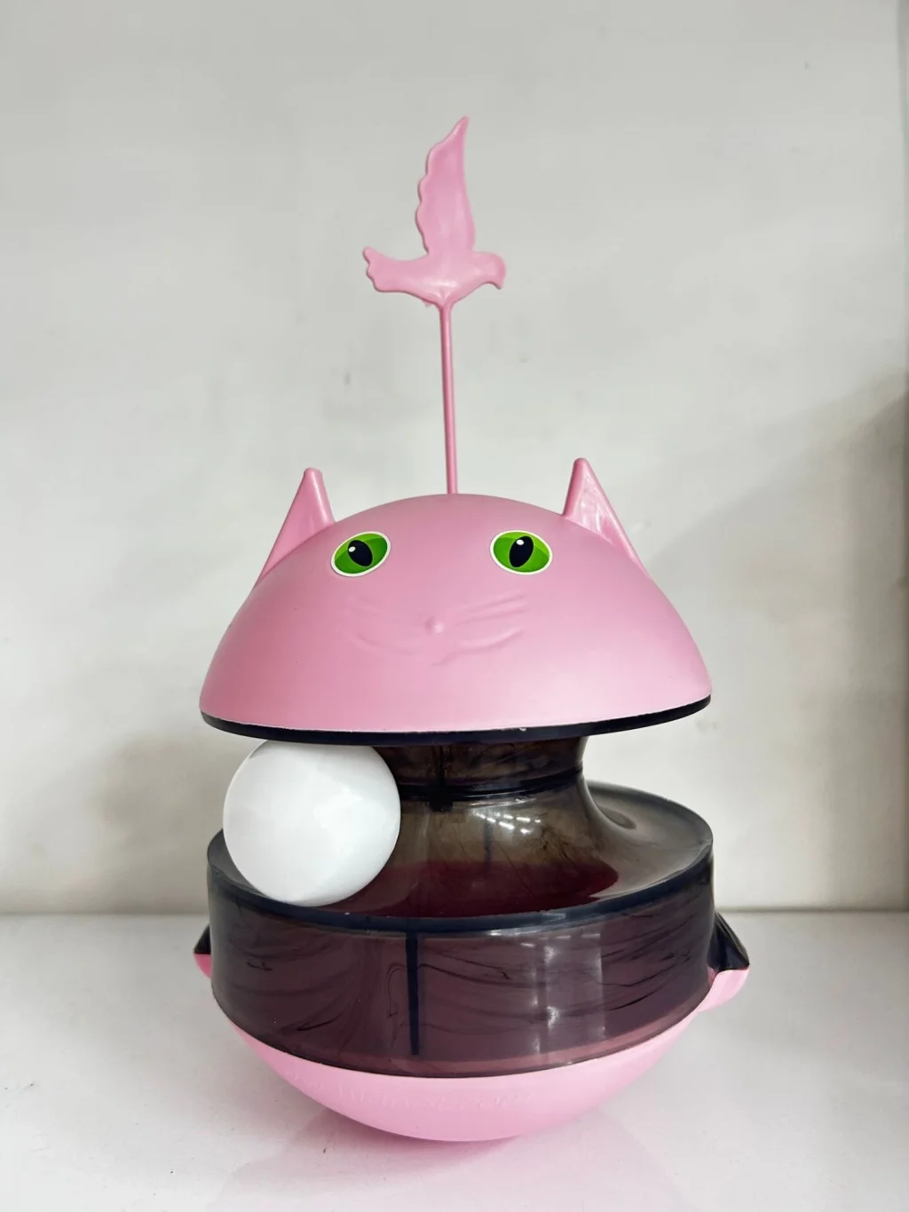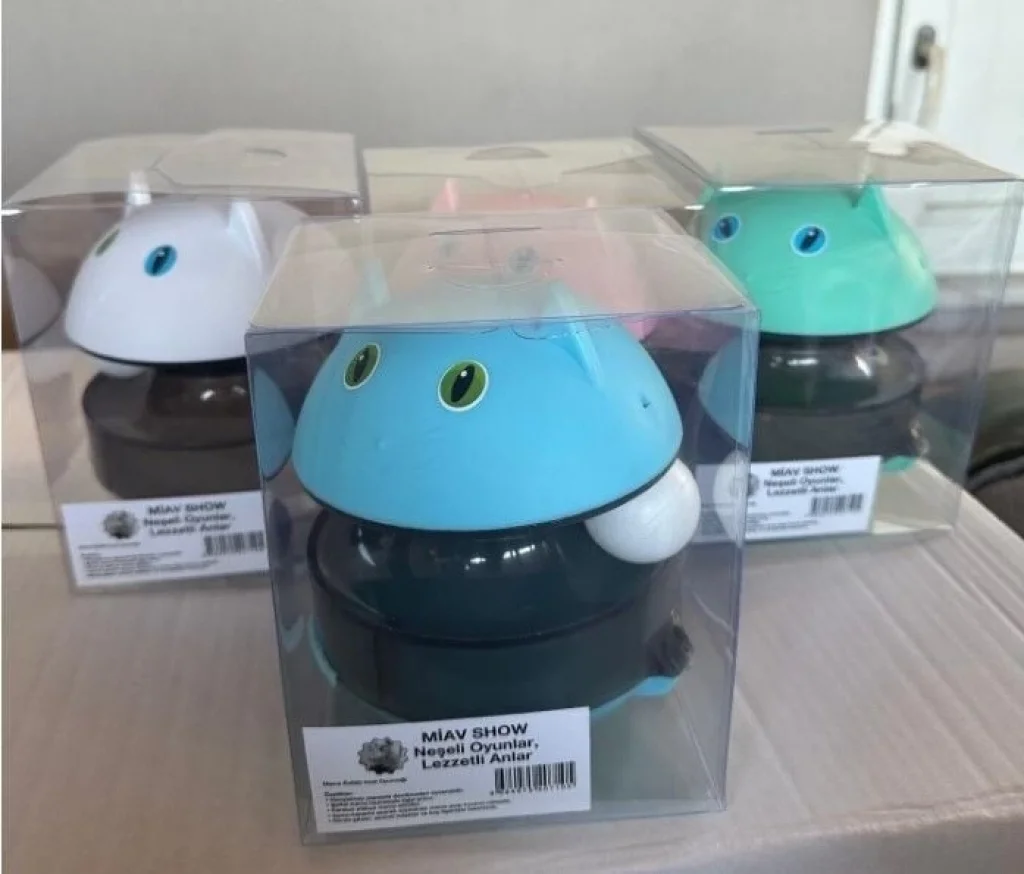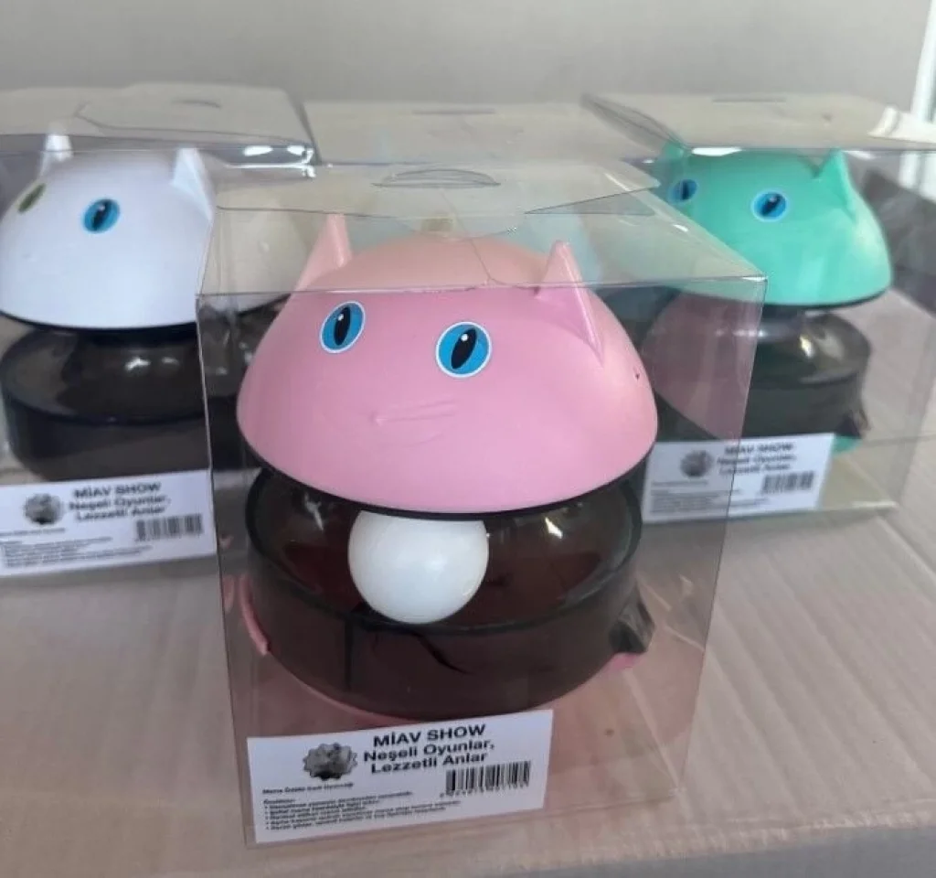 Hacıyatmaz sistemi sayesinde oyuncak devrilmez, her darbede tekrar ayağa kalkar ve mama çıkışı sağlayarak kedinizin ilgisini sürekli canlı tutar.