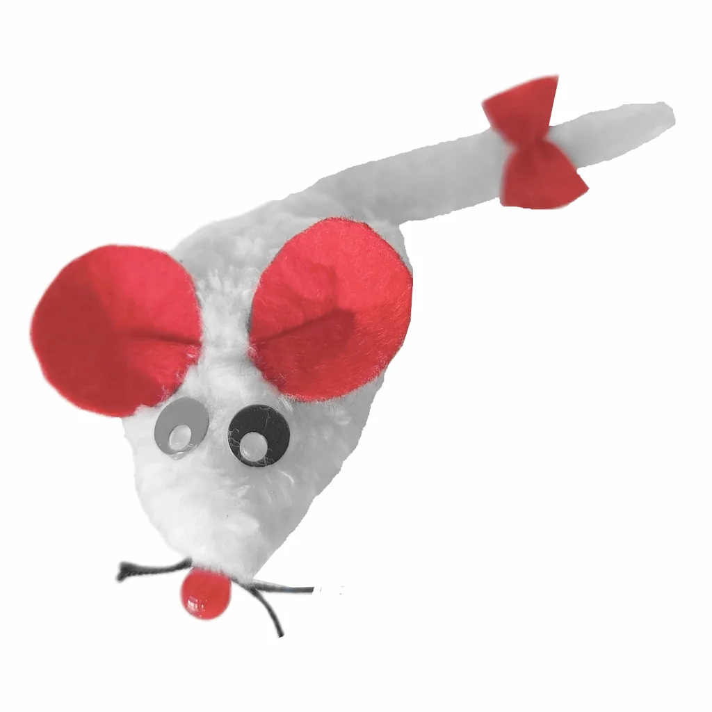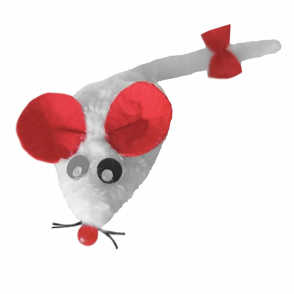 Markapet Kedi Oyuncağı Bıyıklı Peluş Fare 4,5 x 6-15 cm Beyaz Fare boyu 6 cm, genişliği 4,5 cm, kuyruk 9 cm şeklindedir. Bıyıklı fare, peluştan özel olarak tasarlanmış papyonlu kedi oyuncağı olup kediniz için ilgi çekici bir oyuncak çeşididir. Kuyruğunda papyon bulunmaktadır. Sağlam yapısı sayesinde kolay parçalanmaz ve taba renkte bıyıklı kedi oyuncağıdır. Kuyruğu ve üzerindeki papyon toka aksesuarı ile eğlenceli bir tasarımdır. Büyük kulaklı kedi oyuncağı Peluş kumaş ve boncuk elyaftan özel olarak tasarlanmıştır. Ölçüsü: Uzunluk (kuyruk dahil): 15 cm Genişlik: 4,5 cm Fare Boyu: 6 cm - Kedinizi cezbedecek görünümü sayesinde tercih edilen bir kedi oyuncağıdır. - Kedinizi eğlendirirken aynı zamanda hareketlilik açısından kas gelişiminede katkı sağlayacaktır. - Her yaştaki kediler için uygundur. - Bıyıklı ve papyonlu kedi faresidir. - Peluş fare oyuncağıdır.