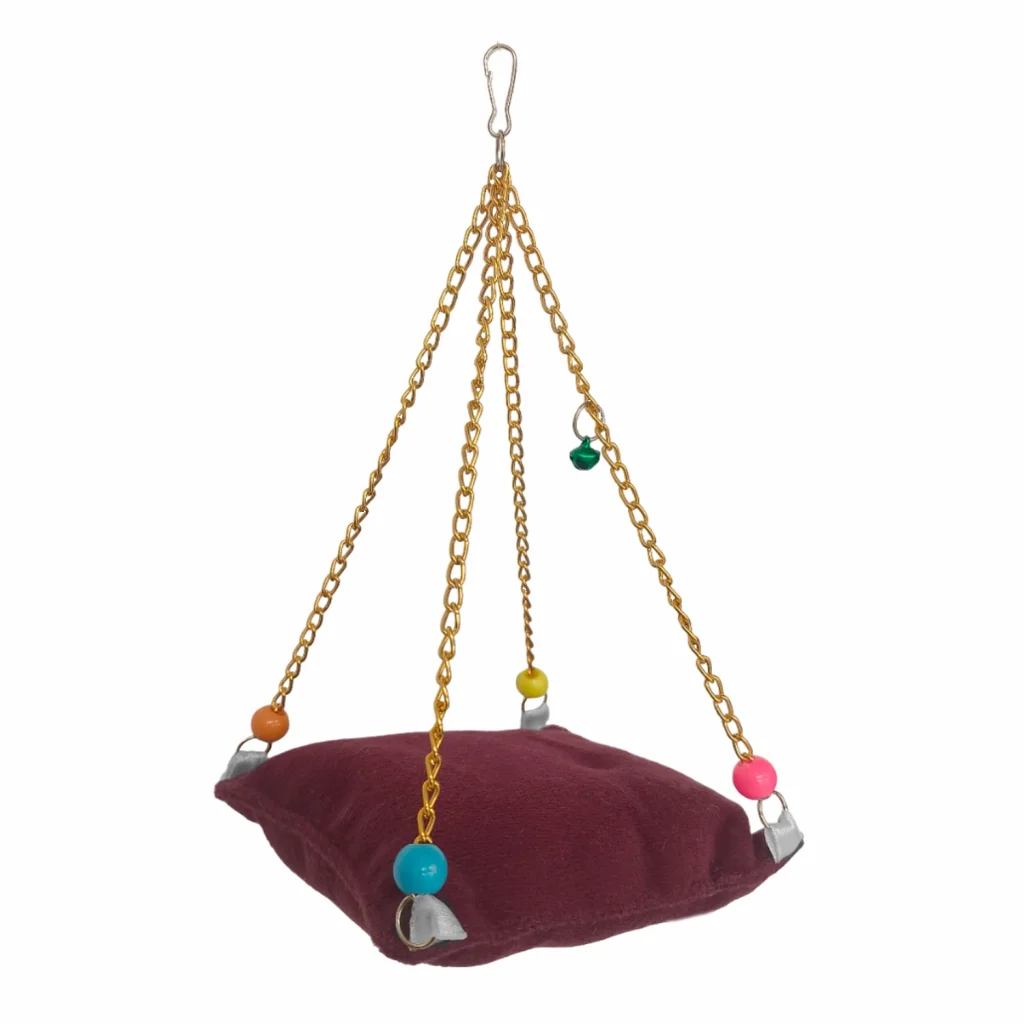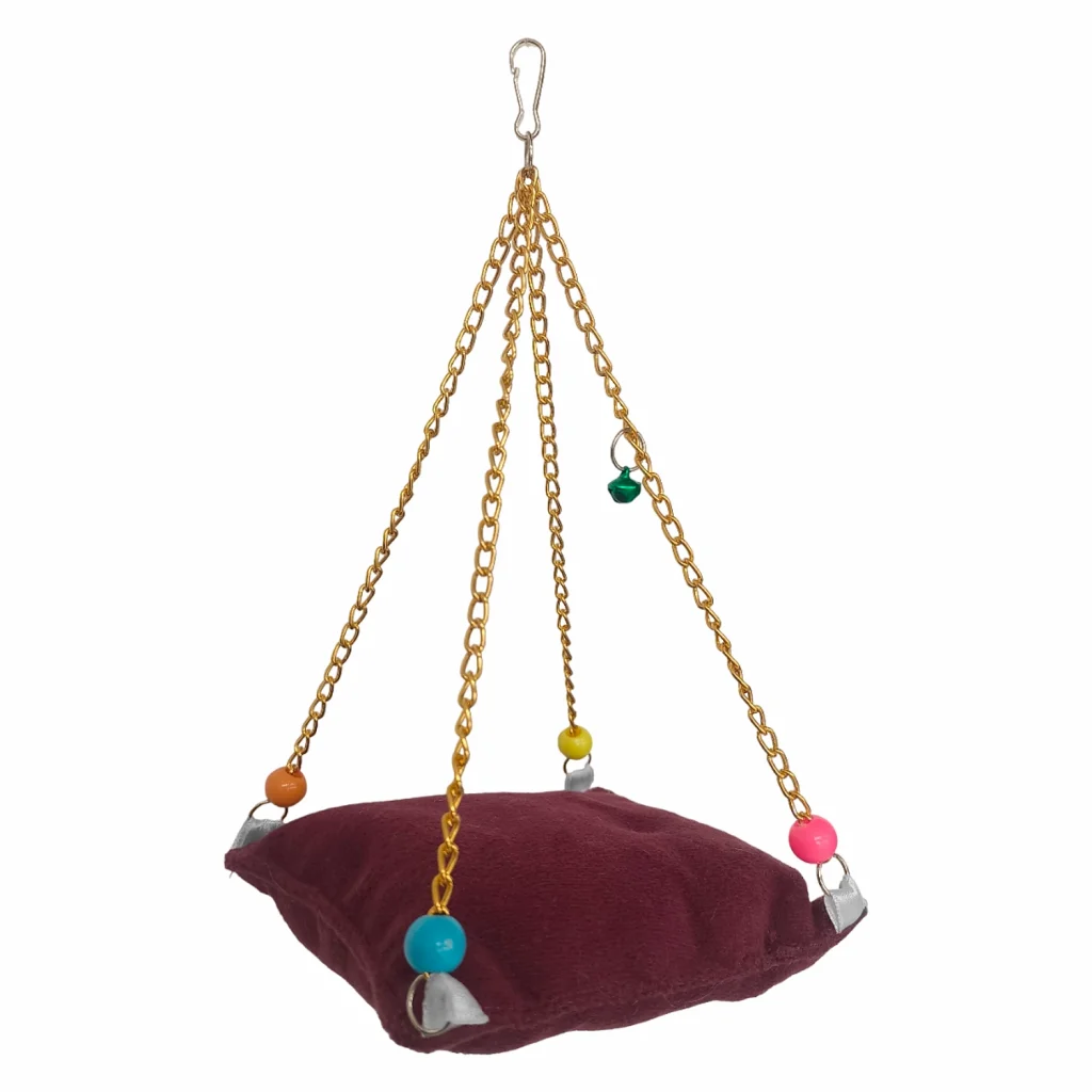 Markapet Zincirli Yataklı Kuş Hamağı Bordo Renkte - SF-BL-1016 - - Markapet Zincirli Yataklı Kuş Hamağı Bordo Renkte Çanlı ve minderli kuş salıncağıdır. Salıncağın ortasında askılı bir peluş minder bulunmaktadır. Renkli çan ve boncuklarla hazırlanan as