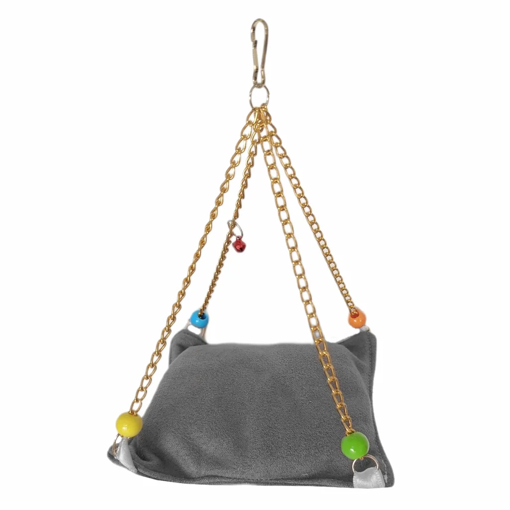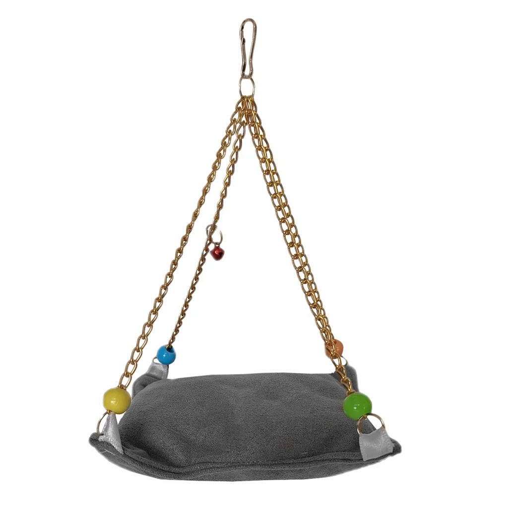 Markapet Zincirli Yataklı Kuş Hamağı Gri Renkte - SF-BL-1416 - - Markapet Zincirli Yataklı Kuş Hamağı Gri Renkte Çanlı ve minderli kuş salıncağıdır. Salıncağın ortasında askılı bir peluş minder bulunmaktadır. Renkli çan ve boncuklarla hazırlanan askısı