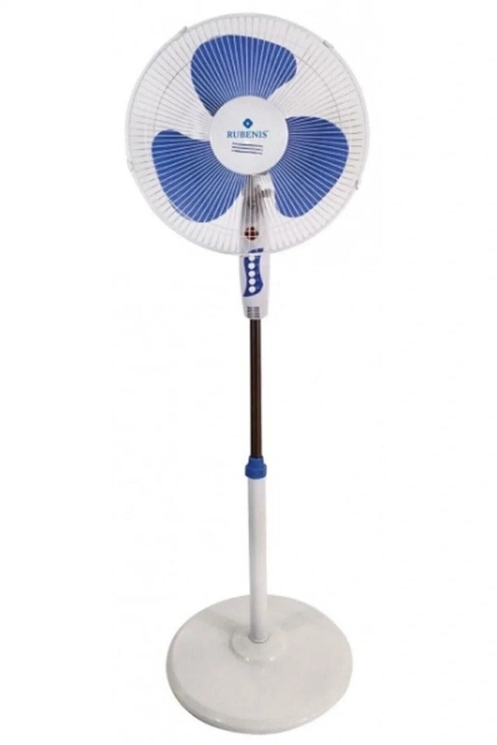 Mekanı hızla serinleten ayaklı vantilatör; 55 Watt gücündeki dayanıklı motoru ile üstün bir sergiler.; ; Yüksek hava sirkülasyonu sağlayan soğutucu vantilatör; üç farklı hız kademesi ile kullanılabilir.; ; Büyük vantilatör; hava salınımını ve ortam serinliğini kişisel isteğinize göre ayarlama avantajı sunar.; ; Beyaz renkli dış kafesi ile dikkat çeken ev tipi vantilatör; her mekanın dekoruna uyum sağlayabilir.; ; Hava akışını istediğiniz seviyede kullanmayı mümkün kılan Rubenis vantilatör RBA-05; ayarlanabilir yüksekliği ile pratiklik kazandırır.; 16 İnç ebatında bulunan pervaneye sahip olan Rubenis RBA-05 vantilatör; 40 cm olan pervane çapı ile daha fazla hava taşıyarak soğutma derecesini artırır.; ; Metal ızgara ile korunan pervaneye sahip 16 inç vantilatör; güvenli kullanıma olanak tanır.; Pervane rengi mavi vantilatör; beyaz renkli dış tasarımı ile birlikte hoş bir uyum yakalayarak beğeni toplar.; ; Kaliteli PVC pervaneye sahip olan 55 Watt vantilatör; sağlam ve dayanıklı yapısı ile uzun yıllar kullanılabilir.; ; Çalışma ortamında ya da dinlenirken sizi rahatsız etmeyen 3 kademeli vantilatör; sessiz bir şekilde çalışır.; ; Ultra geniş doğal salınım modu bulunan 40 cm vantilatör; geniş bir alana hava salınımı yaparak daha fazla serinlik verir.; ; 220V~50Hz voltaj ile çalışan 3 pervaneli vantilatör; elektrik gücünü verimli bir biçimde kullanarak enerji tasarrufu yapmayı destekler.; Kolay taşınan yuvarlak vantilatör; ergonomik tasarımı sayesinde herhangi bir ortamda rahatlıkla tercih edilebilir.;