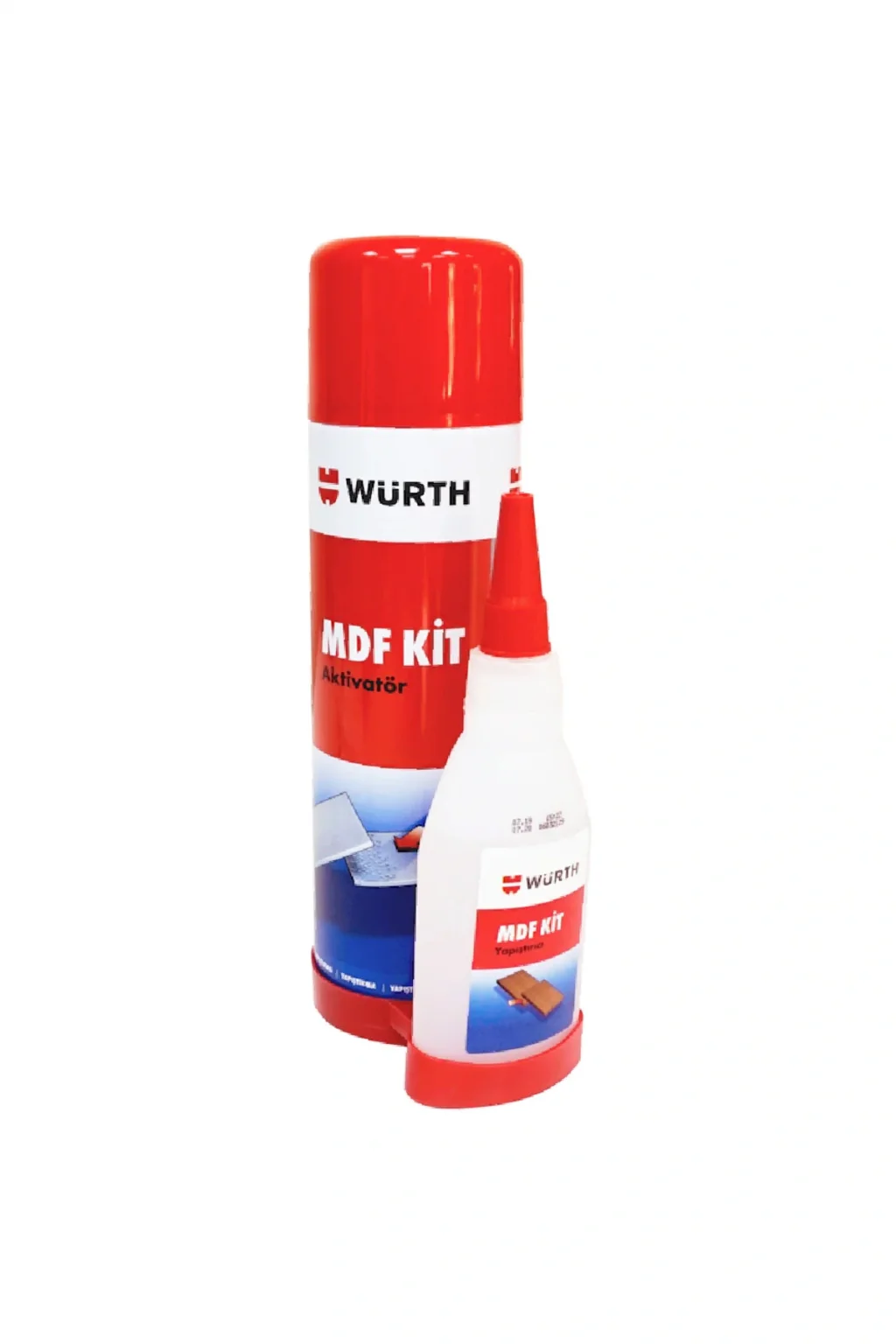 Würth Mdf Kit Hızlı Yapıştırıcı Yüksek viskoziteli siyanoakrilat bazlı yapıştırıcı ve aktivatörünü içeren, hızlı kürleşen ve üstün performanslı yapıştırıcı seti.; Yüksek yapıştırma gücü.; Dikey yüzeylerde kullanıma uygundur, akma ve sıçrama yapmaz.; Yüksek viskoziteli olduğu için özellikle gözenekli ve yapıştırılması zor yüzeylerde yapışma gücünün artmasını sağlar.; Siyanoakrilat yapıştırıcı kullanılıncaya kadar orijinal ambalajında ağzı kapalı bir şekilde saklanmalıdır.; Ambalajı sıkıca kapatılmadığında yapıştırıcı sertleşir.; Güçlü ısı ve ışık kaynaklarından uzak tutulmalıdır.; Cilt ile temasında hızla kürleşir.; Cilde ve göze damlatmayınız, gözle temasında ciddi hasar verebilir.; Kullanım alanıAhşap parçaların montaj ve tamiratında.; MDF, kauçuk, deri ve plastik yüzeylerde.; Özellikle hızlı kürleşme istenen uygulamalarda tercih edilir.; Yüzey temiz, kuru, her türlü kir ve yağdan arındırılmış olmalıdır.; Uygulama yapılacak yüzeylerden birine aktivatör uygulanır ve yüzeyin kuruması beklenir.; Diğer yüzeye yapıştırıcı uygulandıktan sonra yüzeyler bir araya getirilerek birkaç saniye sıkıca bastırılır.