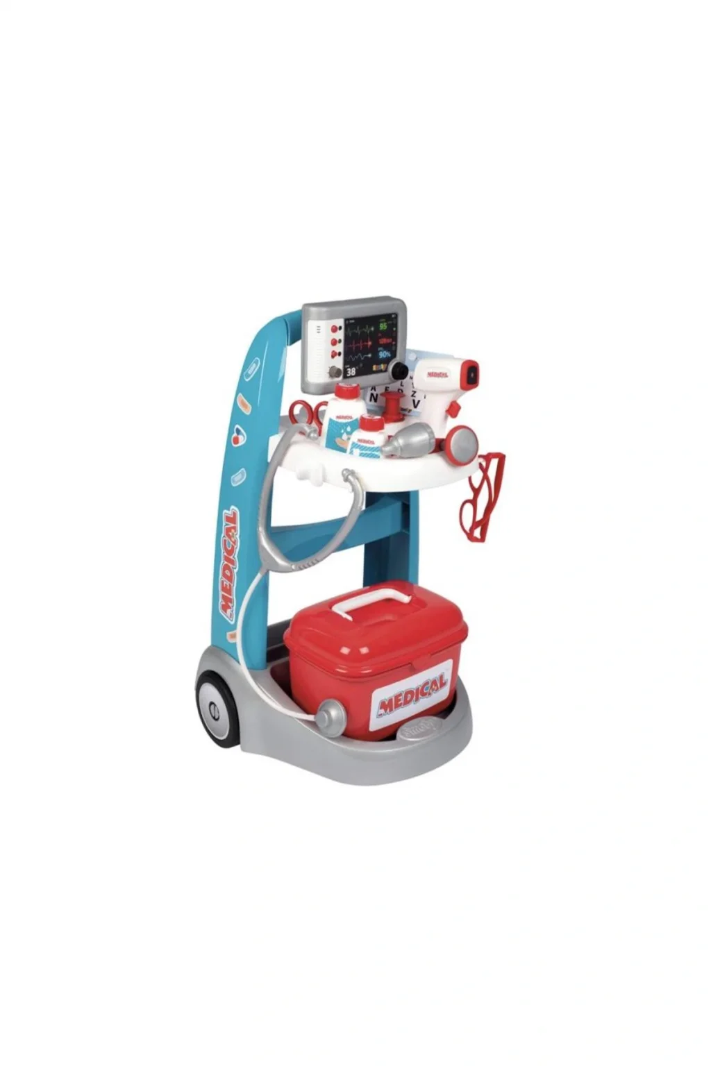 Smoby Medikal Elektronik Doktor Setli İlk Yardım Müdahale Arabası 340207 Smoby’den elektronik doktor arabası.; Bu mobil acil durum arabası, daha küçük çocuklar için bile hafif ve manevra kabiliyetine sahiptir.; Elektronik EKG modülü, doktor oyununu daha da gerçekçi kılan çok sayıda fonksiyona ve ses efektine sahiptir! Çok sayıda saklama alanında acil durumlar ve küçük hastalarınızın tedavisi için ihtiyacınız olan her şeyi saklayabileceksiniz.; Bir infüzyon damlası, şırınga, termometre, makas, bardak, boş ilaç paketleri ve çok daha fazlası gibi sayısız araç gereç içeren oyuncak doktor çantası.; Küçük hastalar stetoskop ile dinlenebilir.; Tekerleri sayesinde kolayca istinilen yere götürülebilir.; Ürün Boyutları: 31 x 32,1 x 55,2 cm.; Yaş tavsiyesi: 3 yaşından büyük çocuklar için uygundur.