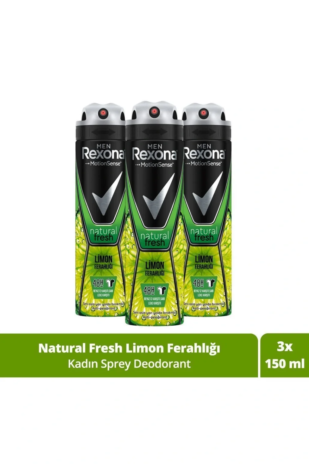 Günlük kullanım için ideal, ferahlatıcı limon kokusuyla taze bir his sunar; Pratik sprey formu sayesinde kolay ve eşit uygulama imkanı sağlar; 150 ml'lik ambalajı ile uzun süreli kullanım için ekonomik bir seçenektir; Üç adet set halinde sunulan bu ürün, sık sık deodorant ihtiyacınızı karşılar;