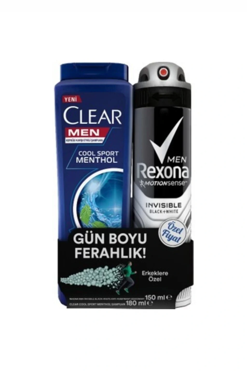 Rexona men invisible black-White deodorant 150 ml.+clear men coolsportmenthol şampuan 180 ml
