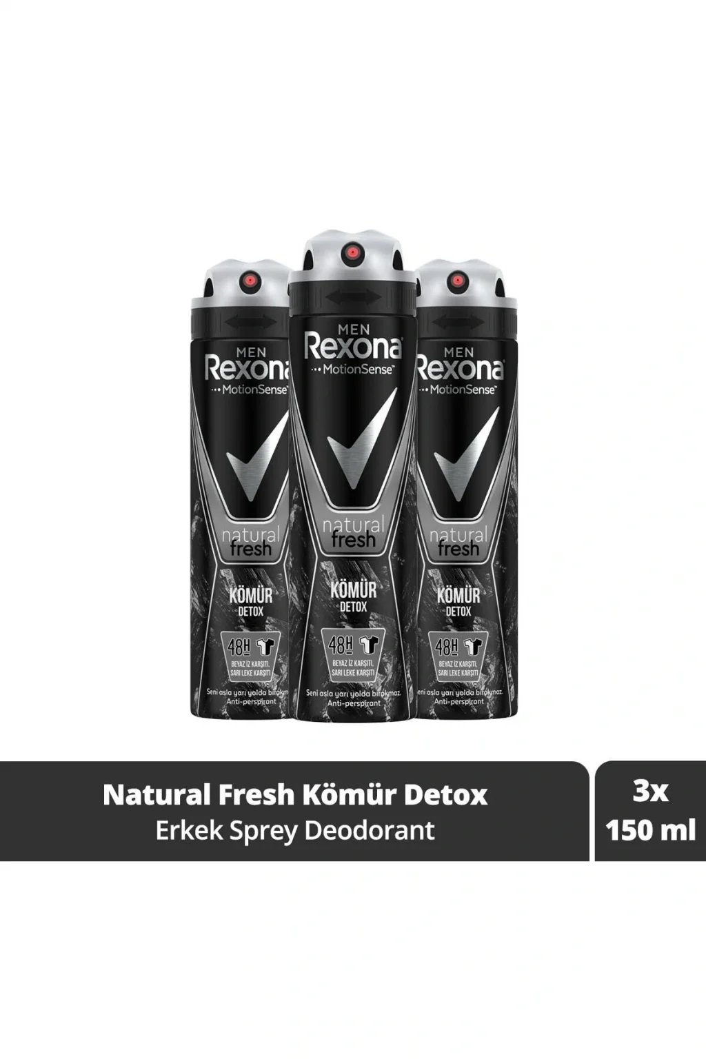 Günlük kullanım için ideal, ferahlatıcı bir deneyim sunan Men Natural Fresh Kömür Deodorant Sprey, 150 ml'lik pratik ambalajıyla her an yanınızda; Üç adet sprey deodorant ile uzun süreli kullanım avantajı; sık sık deodorant satın alma ihtiyacını ortadan kaldırır ve ekonomik bir seçenek oluşturur; Kömür detoks etkisiyle ter ve kötü kokulara karşı etkin bir mücadele sunar, gün boyu taze ve temiz bir his bırakır;