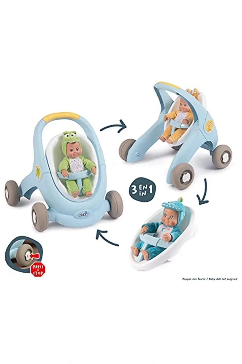 Smoby'nin 3'ü 1 arada, yürüteç bebek arabası ve puset işlevlerini aynı anda birleştirir. ; Böylece çocuklar, oyuncak bebeklerini kolayca sürüşe çıkartabilir ve aynı zamanda ilk yürüme denemelerinde Minikiss Croc Babywalker tarafından desteklenir. ; Ergonomik tasarımı sayesinde, araba özellikle dengelidir ve isteğe bağlı bir fren mekanizması ile gerektiğinde güvenilir bir şekilde durmasını sağlar. ; Pusetin koltuğu, sevimli bebek çocuğa ya da seyahat yönüne bakacak şekilde iki konumda monte edilebilir. ; Dönüşüm, basit bir tıklama sistemi kullanılarak iki kolay adımda yapılır. ; Ayrıca koltuk, bebek arabası olmadan puset şeklinde kullanılabilir, bebeği koltukta güvenli ve sağlam bir şekilde tutan bir kemere sahiptir. ; Ürün boyutları (UxGxY): 50 x 45 x 47 cm. ; Yaş önerisi: 12 aylıktan itibaren çocuklar için uygundur Güvenlik Uyarısı Uygun uyarı yok.;