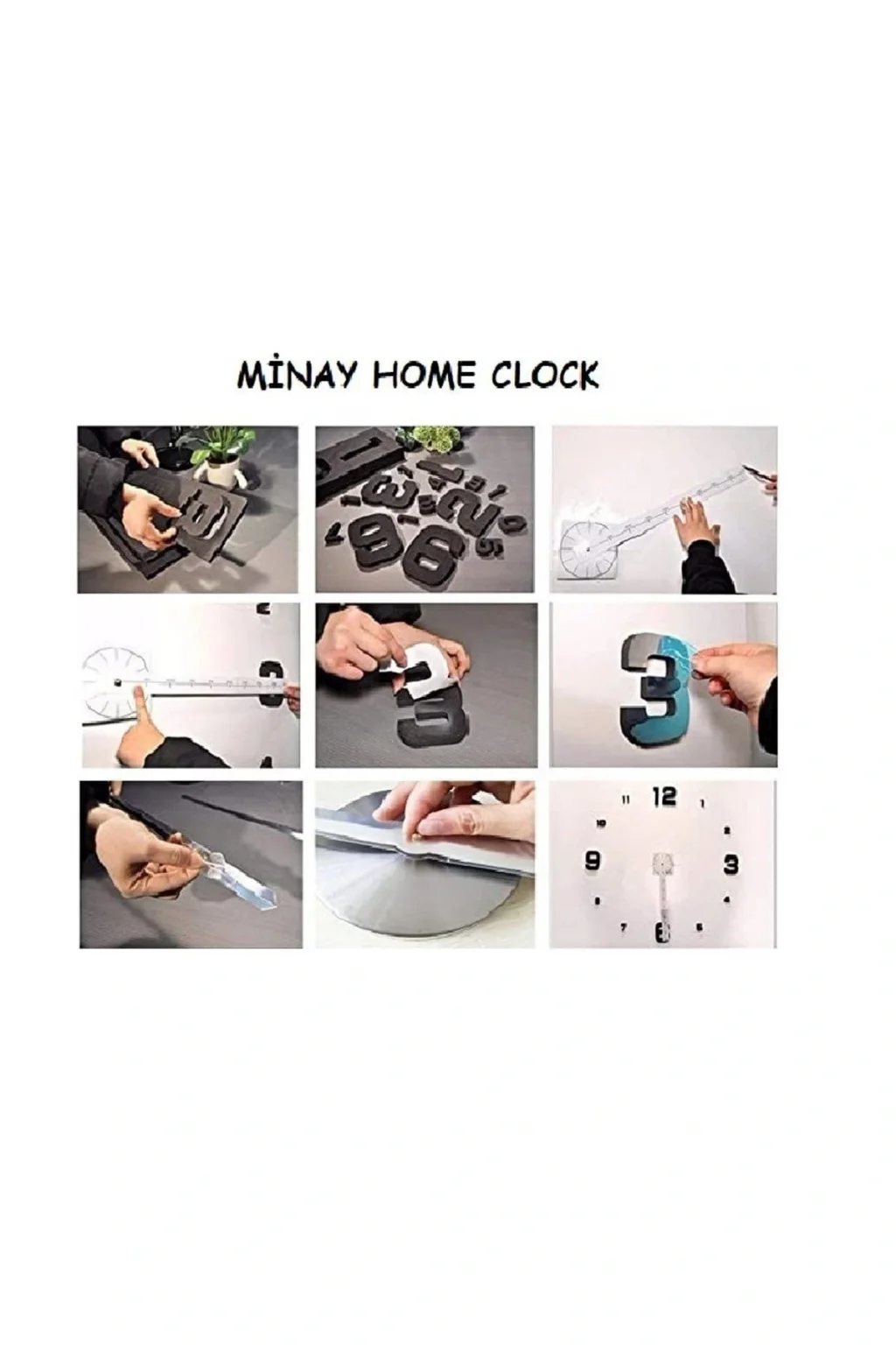 3d Duvar Saati Latin Rakamlar Büyük Boy MİNAY HOME CLOCK 3D DUVAR SAATİ Kolay montaj için hazır montajlı mekanizma 120 cm çapa kadar uygulanabilir 70 ila 120 cm arası çapa kadar uygulanabilir Rakamlar 10cm uzunlukta akrep : 13 cm yelkovan : 18 cm mekanizma 10 cm (çiviye asılıyor) rakam kalınlığı 8 mm malzeme ahşap aynalı pleksi (sticker değildir - Deforme olmayan dayanıklı malzeme) rakamlar yapışıyor (kaliteli yapışkan) saat mekanizması : Sessiz akar saniye (silent sweep movement) özel tasarım lazer kesim akrep ve yelkovan metaldir. ; 1 adet aa kalem pil ile çalışmaktadır. ; KUTU İÇİNDEN ÇIKAN CETVELİ KULLANIP ÖLÇÜLENDİRİNİZ. ; ÖNCELİKLE 3-6-9-12 RAKAMLARININ MONTAJINI YAPINIZ. ; Montaja hazır. ; MEKANİZMAYI TAKARKEN DİKKAT EDİNİZ. ; SANİYE AKREP YELKOVAN YAMULABİLİR. ; Parçaların arkasındaki koruyucuyu kaldırarak direk duvara uygulama yapabilirsiniz. ; ÇİFT TARAFLI BANT KULLANINIZ. ; Pleksilerin önünde de koruyucu jelatin mevcuttur. ; Temizleme sırasında nemli bez kullanabilirsiniz.;