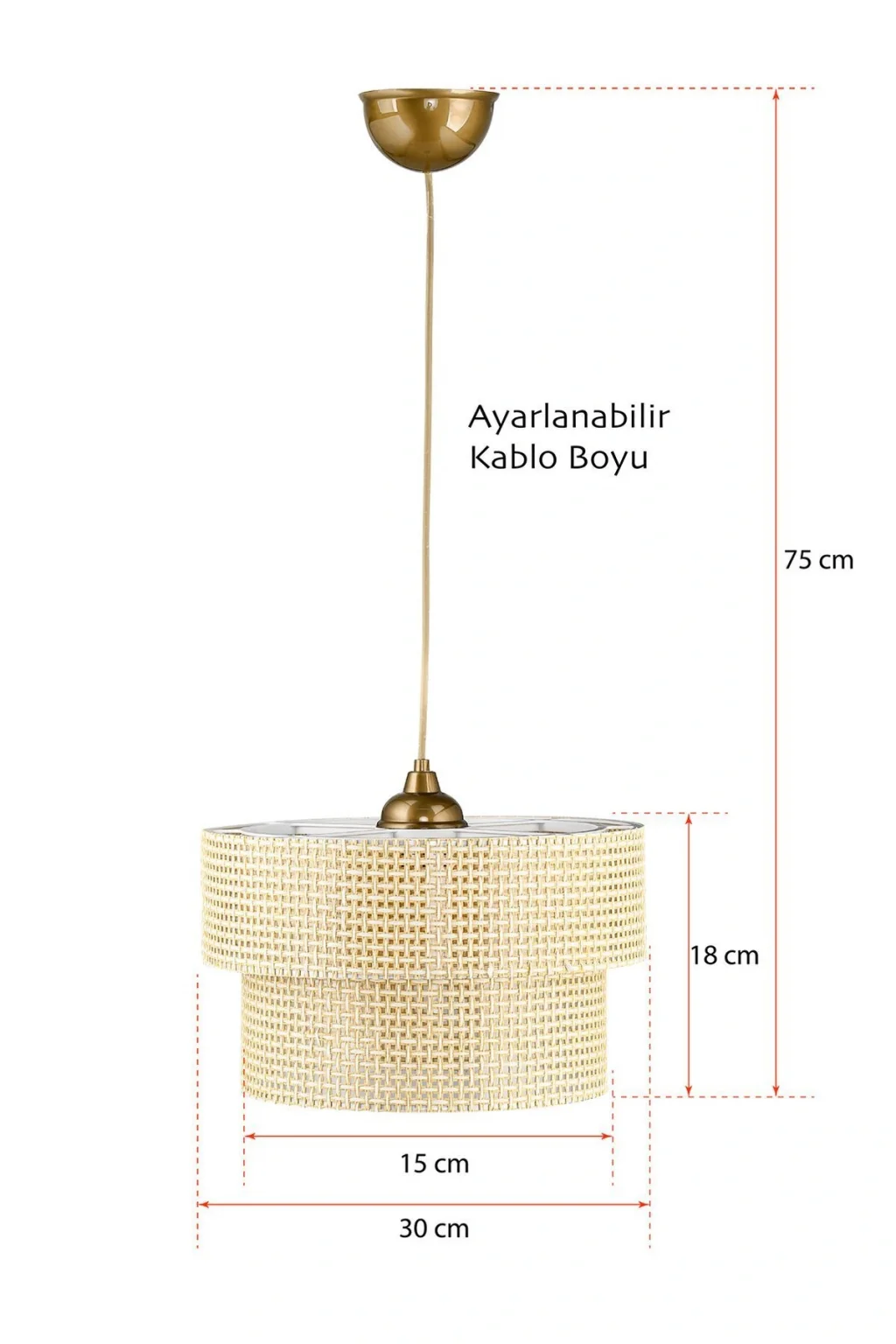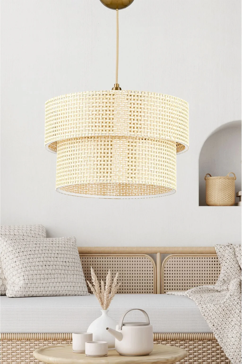 Modern Doğal Hazeran Rattan 2 Katlı Sarkıt Avize Modern tasarımı ile evinizin dekorasyonuna şıklık katan 2 katlı sarkıt avize, salon ve oturma odası gibi geniş alanlarda estetik bir aydınlatma sağlar E27 duy tipi sayesinde geniş bir ampul seçeneği sunar ve kolayca değiştirilebilir ampullerle pratik kullanım imkanı tanır Doğal hasır materyali ile hem dayanıklı hem de çevre dostu bir aydınlatma çözümü sunar uzun ömürlü ve sürdürülebilir bir kullanım vaat eder