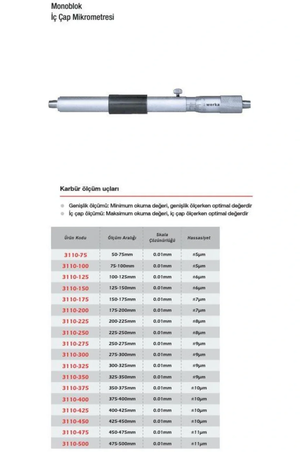 Genel Ürün 3110-275 250-275mm Monoblok İç Çap Mikrometre