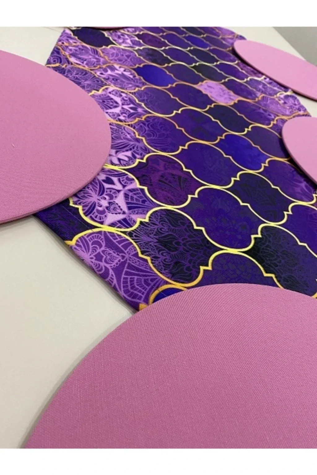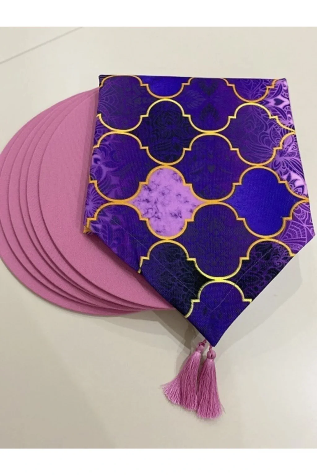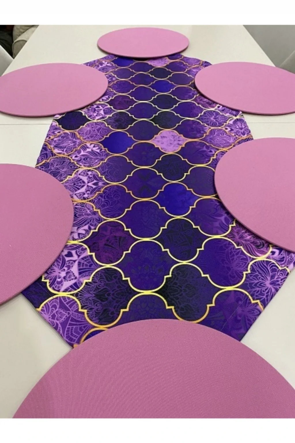 Ürün içeriği: 1 adet runner (runnerlar digital baskılı kumaştır; Boyu cmdir; 30 derecede makinede yıkanabilir; Tersten ütülenmesi gerekmektedir; ) 6 adet supla ( 35 cm çapında 3 mm kalınlığında mdf dir; Supla kılıfları 1; Sınıf premier dokuma kumaş ve lastiklidir; Istenildiği zaman çıkartılıp yıkanabilir ve tekrar takılabilir; Runner kumaşı su geçirir, leke tutmaz ve yıkanabilir supla ise duck keten kumaş su geçirmez leke tutmaz ve yıkanabilen kumaşlardır; ;;