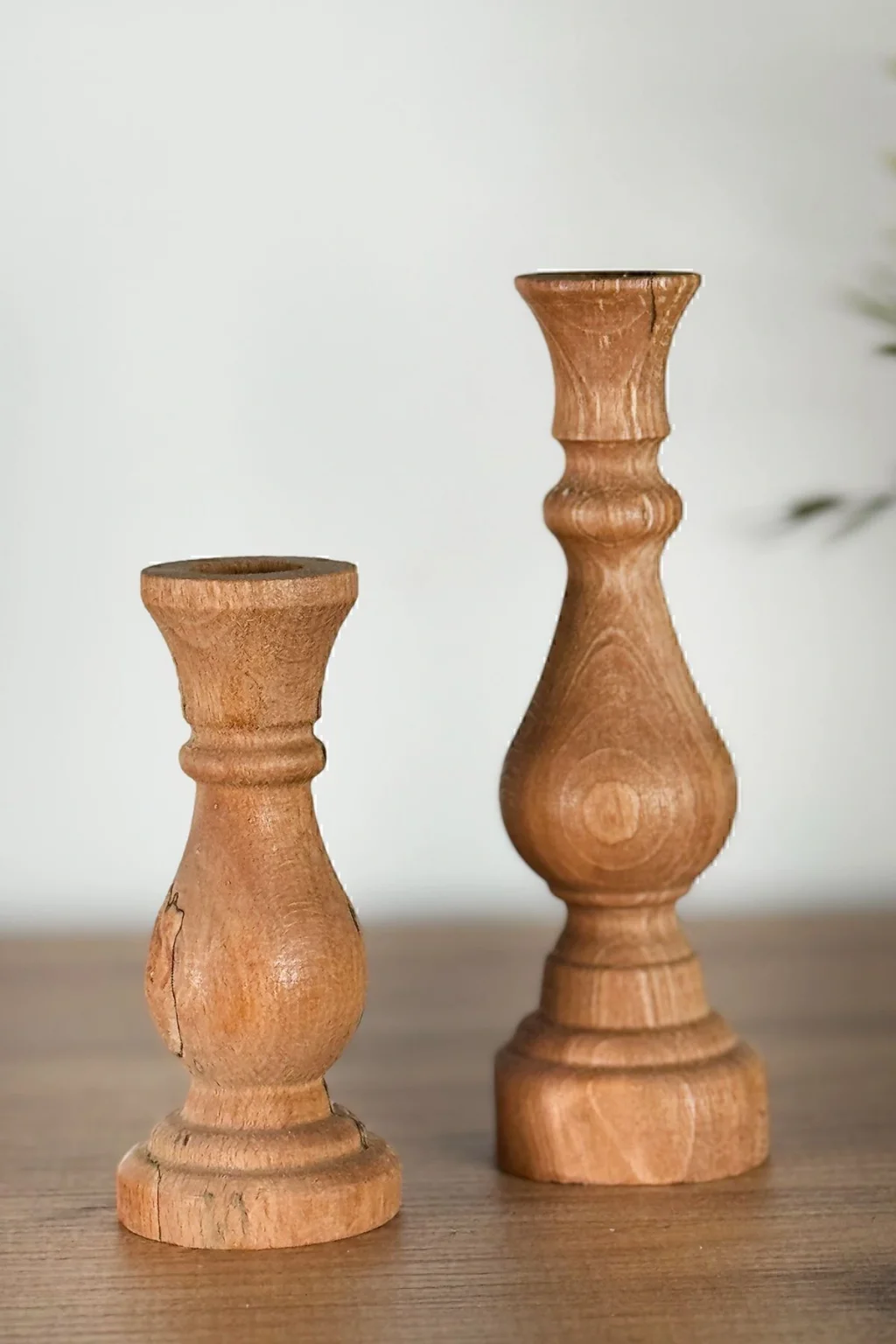 Doğal ahşap malzemesiyle sıcak ve otantik bir atmosfer yaratır; İki adet şamdan ve mumluk seti, evinizin dekorasyonuna şıklık katar; Ahşap yapısı sayesinde dayanıklılık ve uzun ömürlü kullanım sunar; Mumluk tasarımı, hem modern hem de klasik mekanlara uyum sağlar;