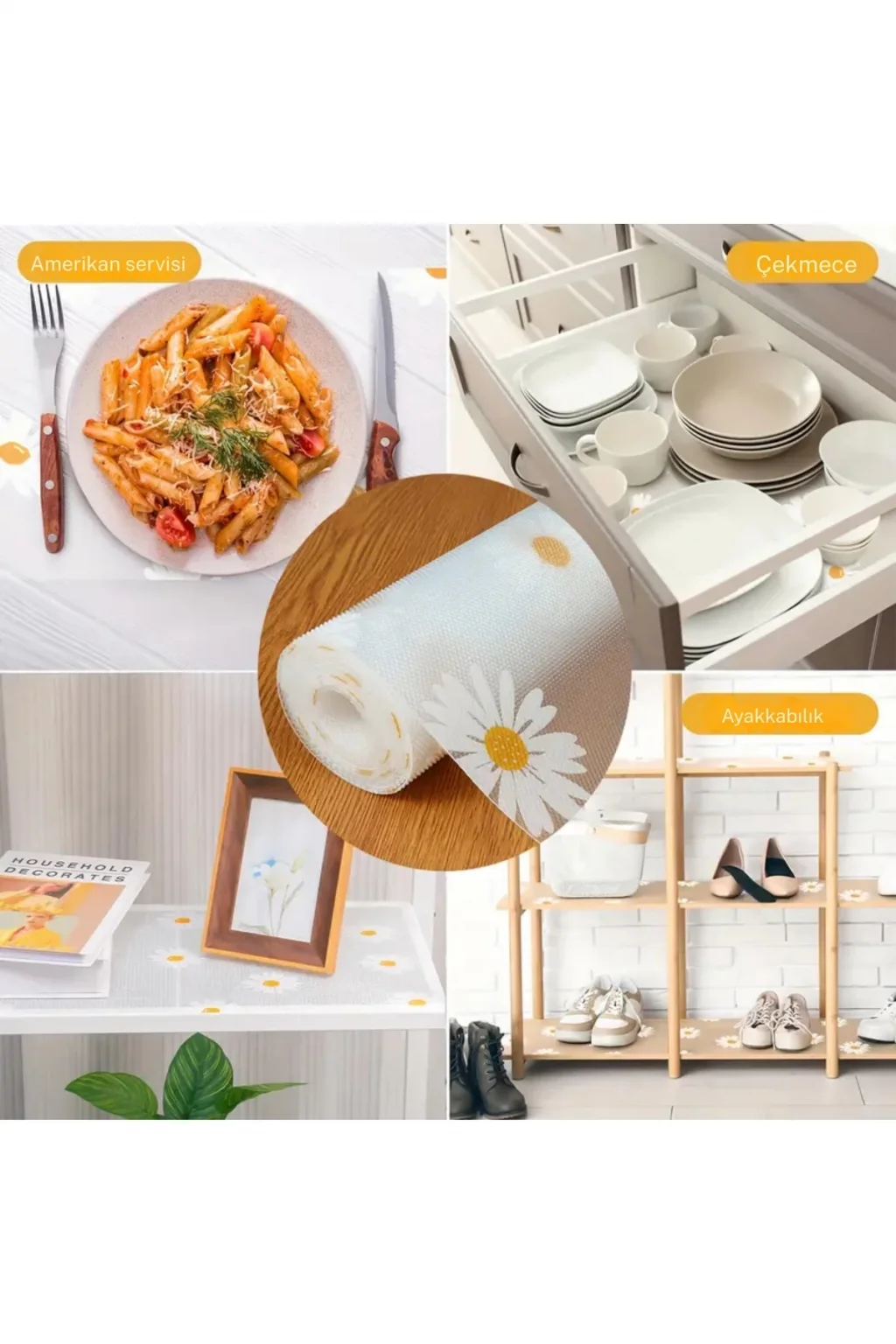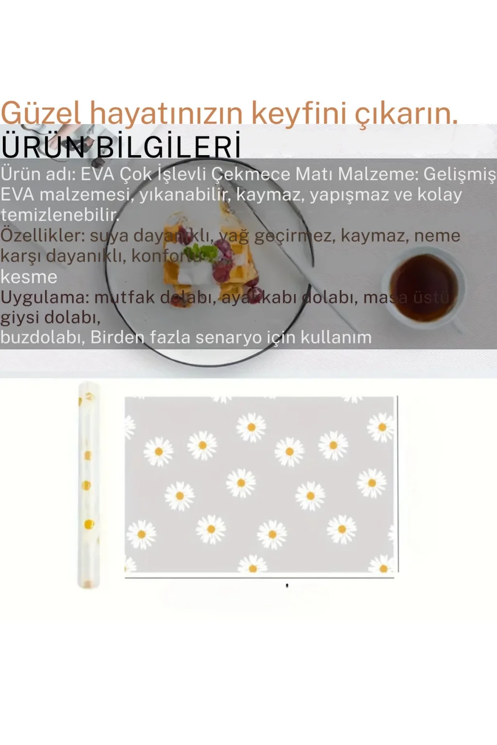 Mutfak Eva Shelf Liner, evinizdeki düzeni sağlarken aynı zamanda dekorasyonunuza da katkıda bulunacak.
