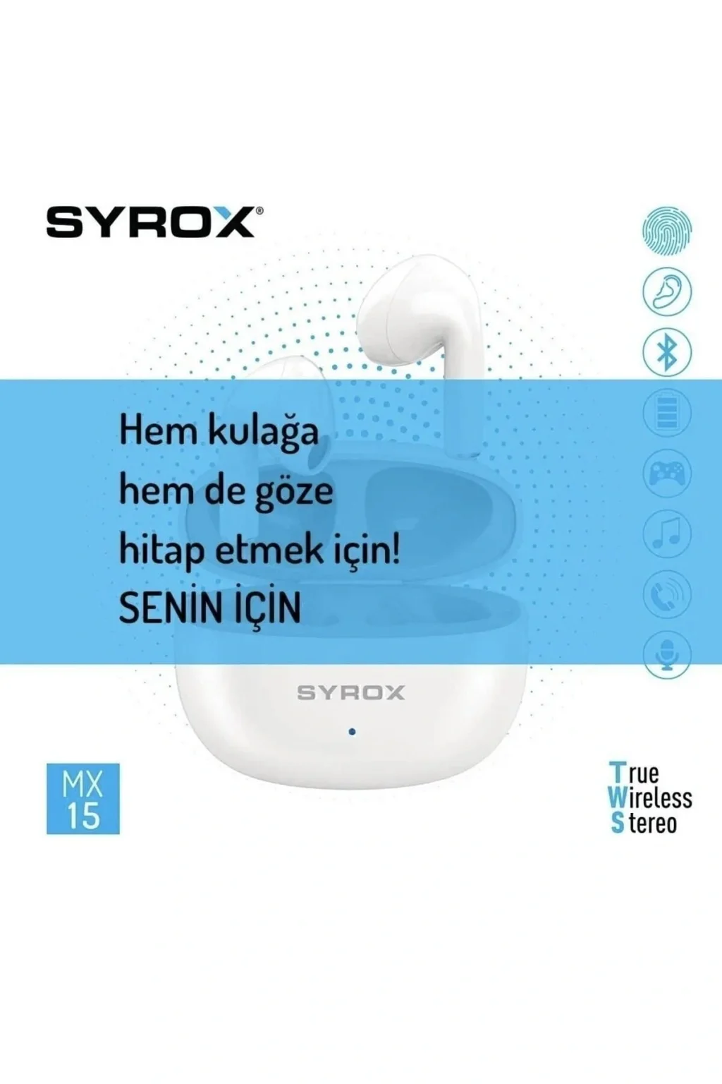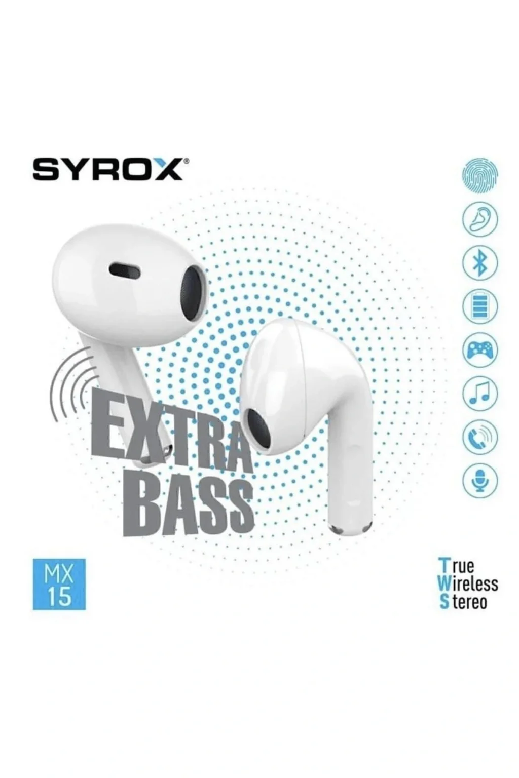 Syrox MX15 Dokunmatik Bluetooth Kulaklık Tws ve Ekstra Bass Bluetooth özelliği olan Tüm Cihazlara Tam uyumlu ve garantilidir Şık, modern ve Sağlam Spor, Toplantı ve gündelik Hayat için Tam aranan Bir kulaklık ? MX15 Dokunmatik Kablosuz Bluetooth Kulaklıklarımızla kablosuz özgürlüğü eksiksiz olarak yaşayabilirsiniz. ; Hareket halinde veya spor yaparken aramaların ve müziğin tadını çıkarabilirsiniz. ; Hafif ve kullanışlı tasarımı ile kaliteli ses ve kaliteli arama gerçekleştirebilirsiniz. ; Tek düğme ile kolayca kontrol edebilirisiniz. ; Akıllı telefonlar, tabletler ve diğer bluetooth özellikli müzik cihazlarınızı hızlı bir şekilde eşleştirebilirsiniz. ; • Önemli Not: Ürün özellikleri ve dokunmatik tuş fonksiyonları için paket içeriğindeki kullanım kullanım kılavuzundan ayrıntılı bilgi edilenebilirsiniz.;