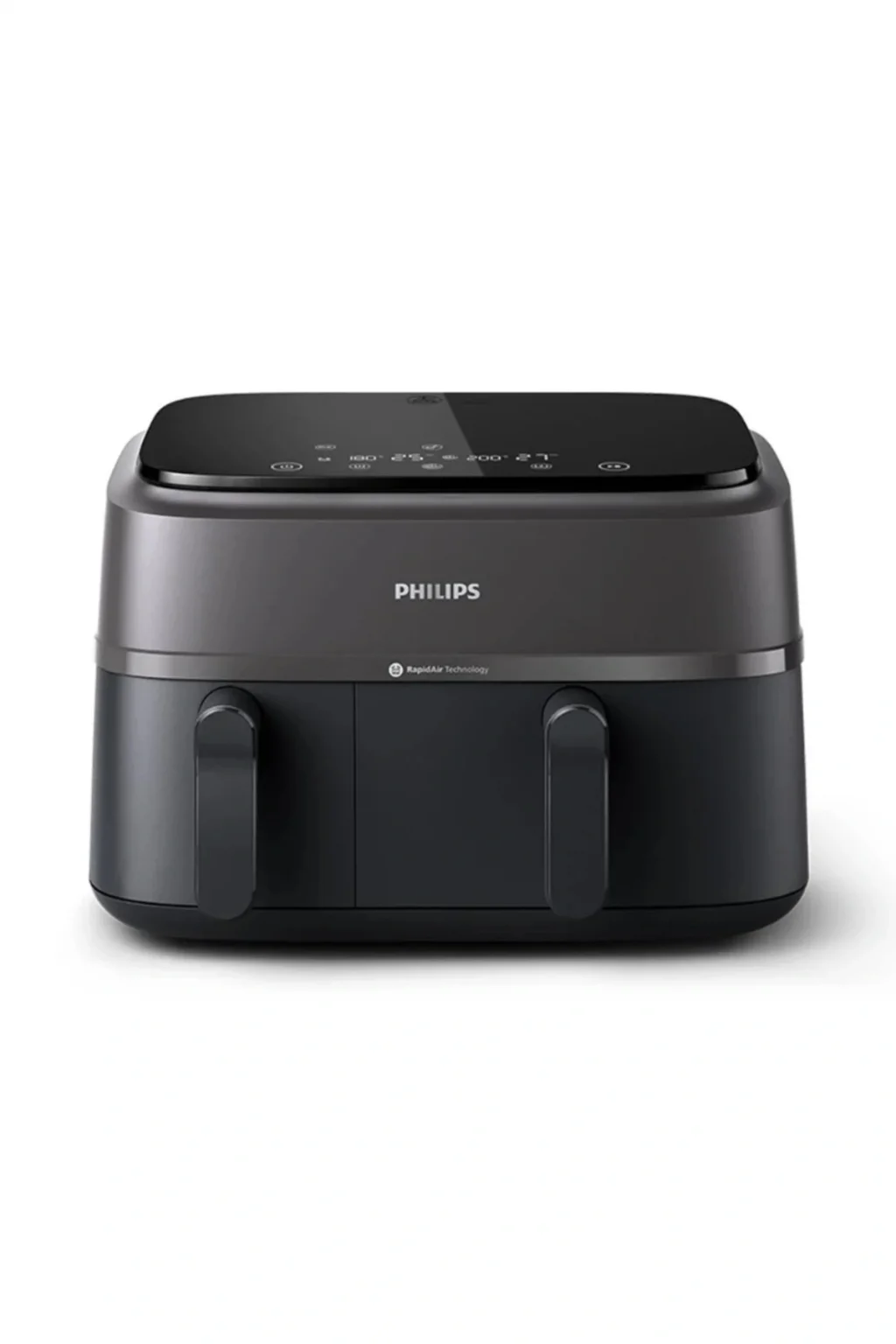 Kontrol etmeye veya tahmin etmeye artık gerek yok. Dokunmatik ekrana sahip Çift Hazneli Airfryer; taze kızartmalar, dondurulmuş kızartmalar, tavuk, et, sebzeler, balık, kek ve tekrar ısıtma için önceden ayarlanmış sıcaklıklar ve süreler sunar.