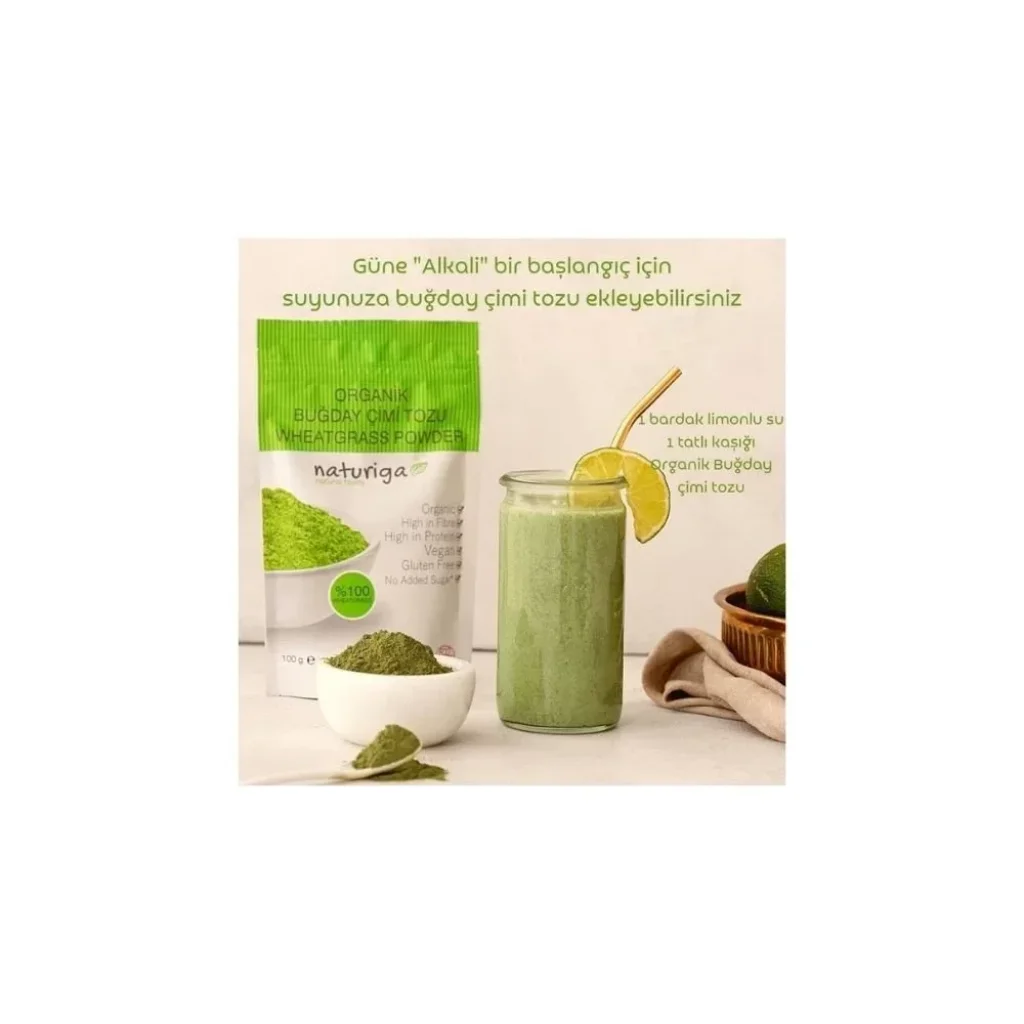 Doğanın Detoks Mucizesi: Naturiga Organik Buğday Çimi TozuGüne daha enerjik başlamak, vücudunuzu toksinlerden arındırmak ve beslenmenize değerli bir "süper gıda" eklemek için doğanın en cömert armağanlarından biriyle tanışın: Naturiga Organik Buğday Çimi Tozu. Özenle yetiştirilmiş ve en besleyici olduğu dönemde hasat edilmiş organik buğday çimlerinden elde edilen bu toz, size saf ve konsantre bir sağlık desteği sunar.