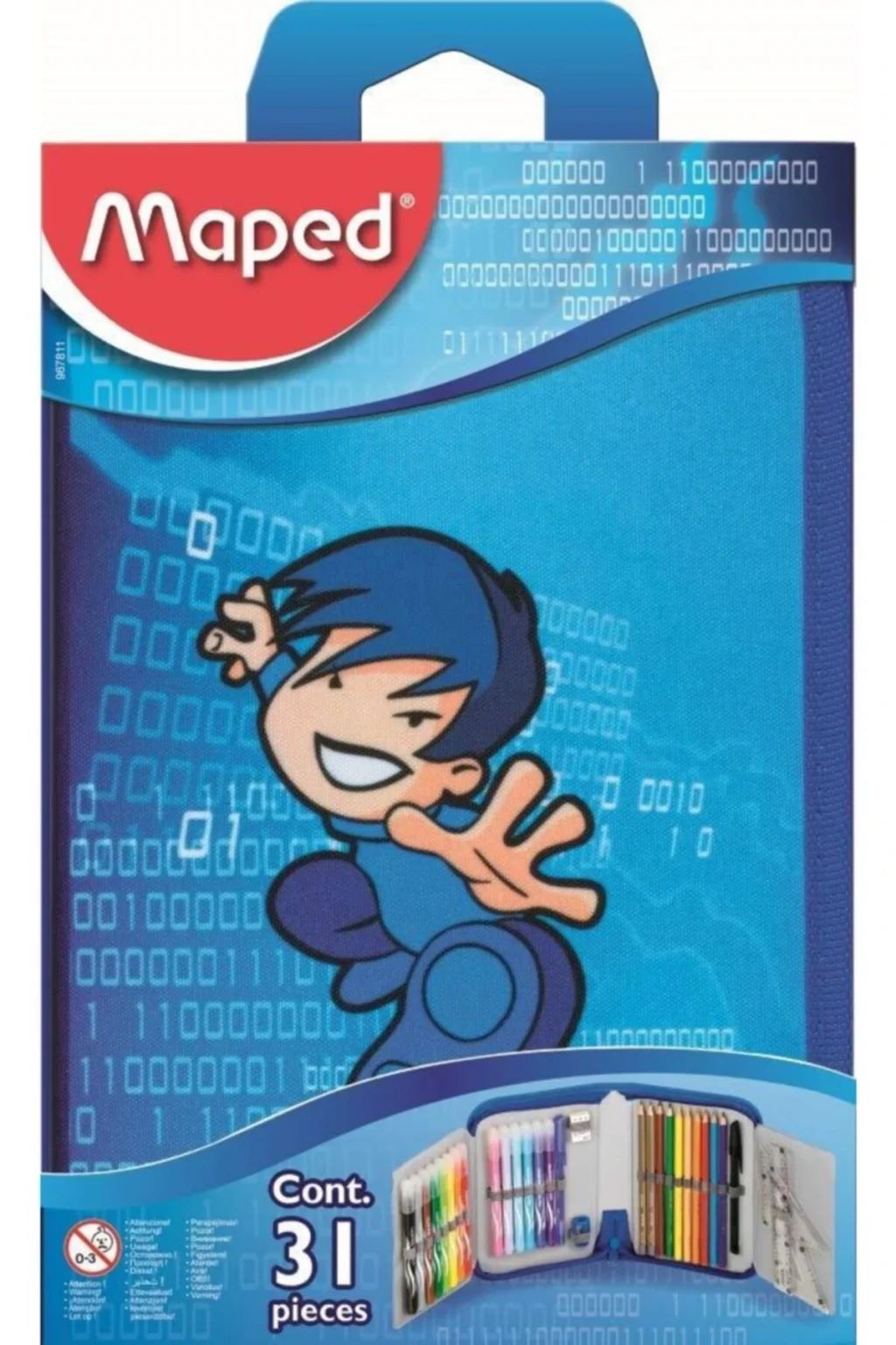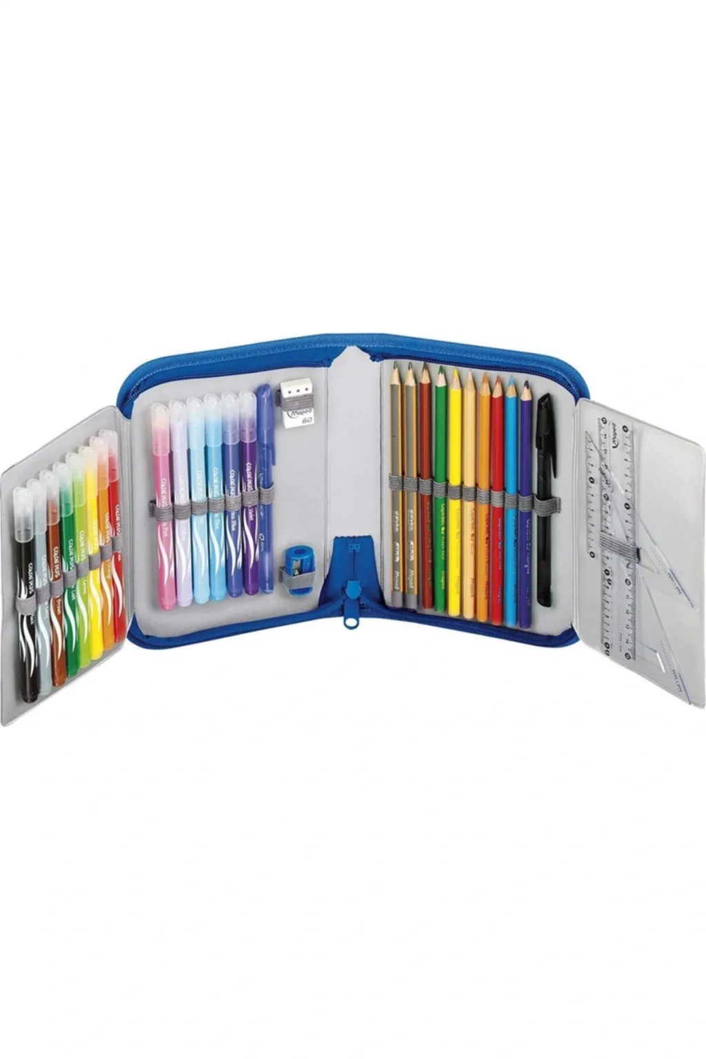 Maped İçi Dolu Kalemkutu 967811 14 adet keçeli kalem orta uçlu 2 adet HB kalem 8 adet renkli kalem 1 adet silgi 1 adet kalemtıraş 2 bilyeli tükenmez kalem 1 plastik cetvel 150 mm 1 adet gönye 45 ° 1 adet gönye 60 ° Ebat:14x21 cm