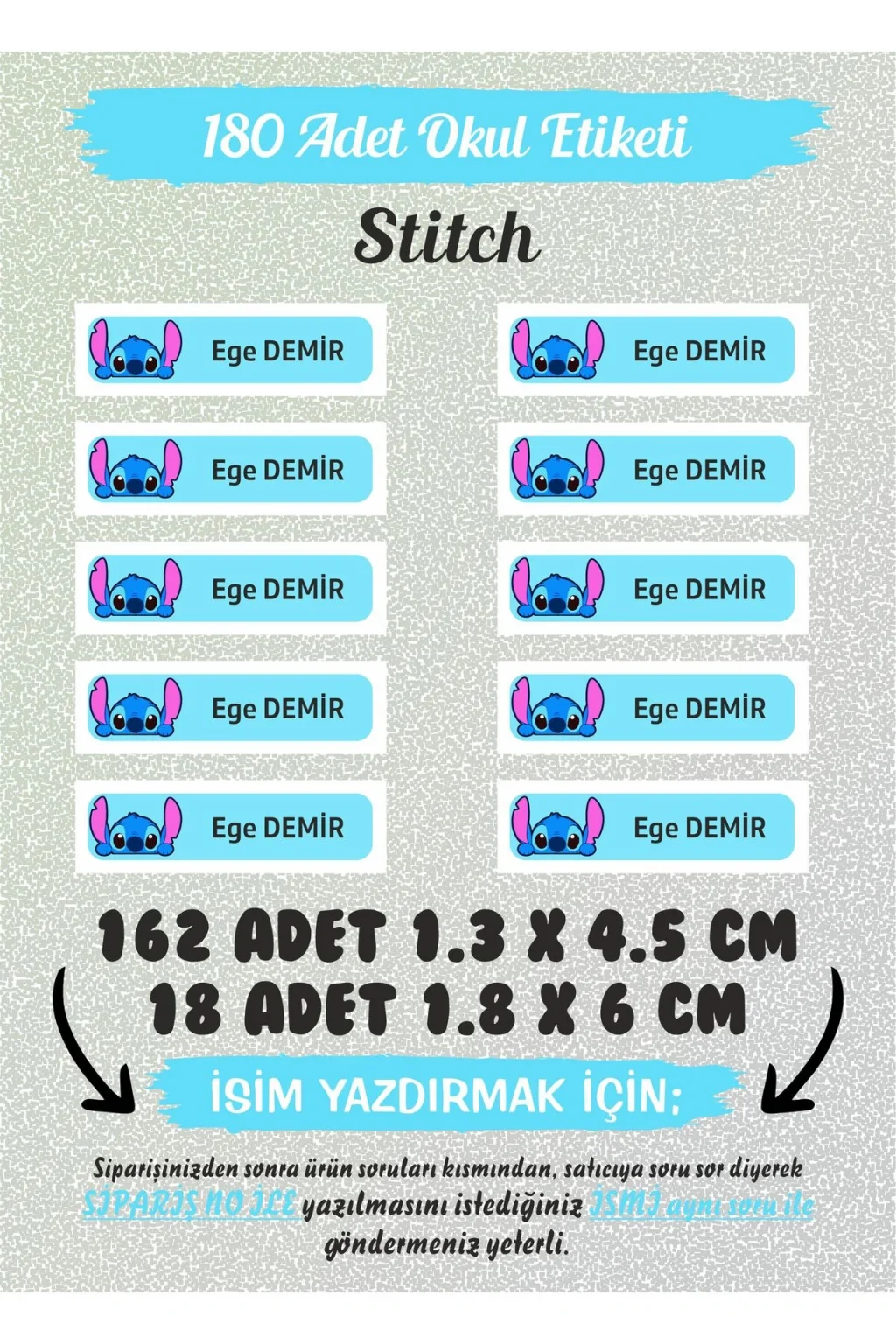 Okul Etiketi Stitch Kalem Defter Özel Isim Yazılabilen Etiket 180 Adet