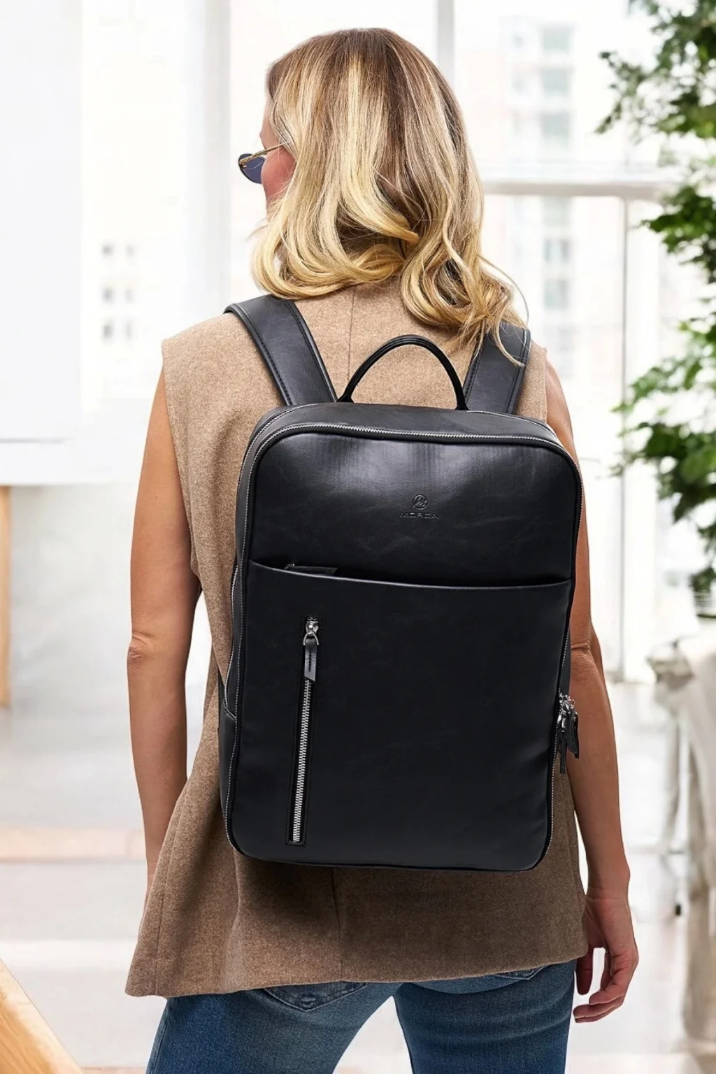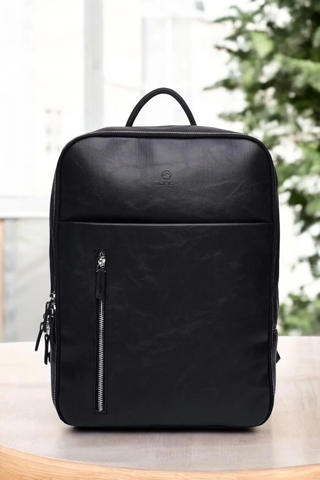 Genel Ürün Organizer Premium Deri 16" inç Crazy Siyah Sırt Laptop Çantası