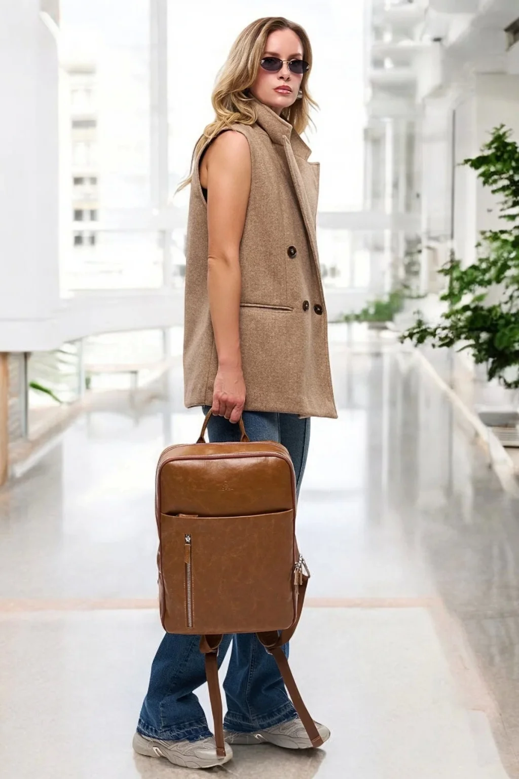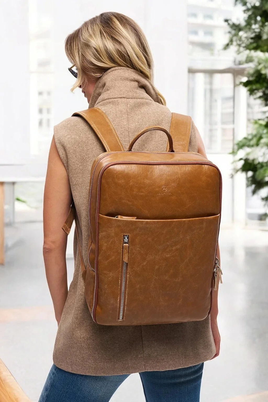 Genel Ürün Organizer Premium Deri 16" inç Taba Nova Sırt Laptop Çantası