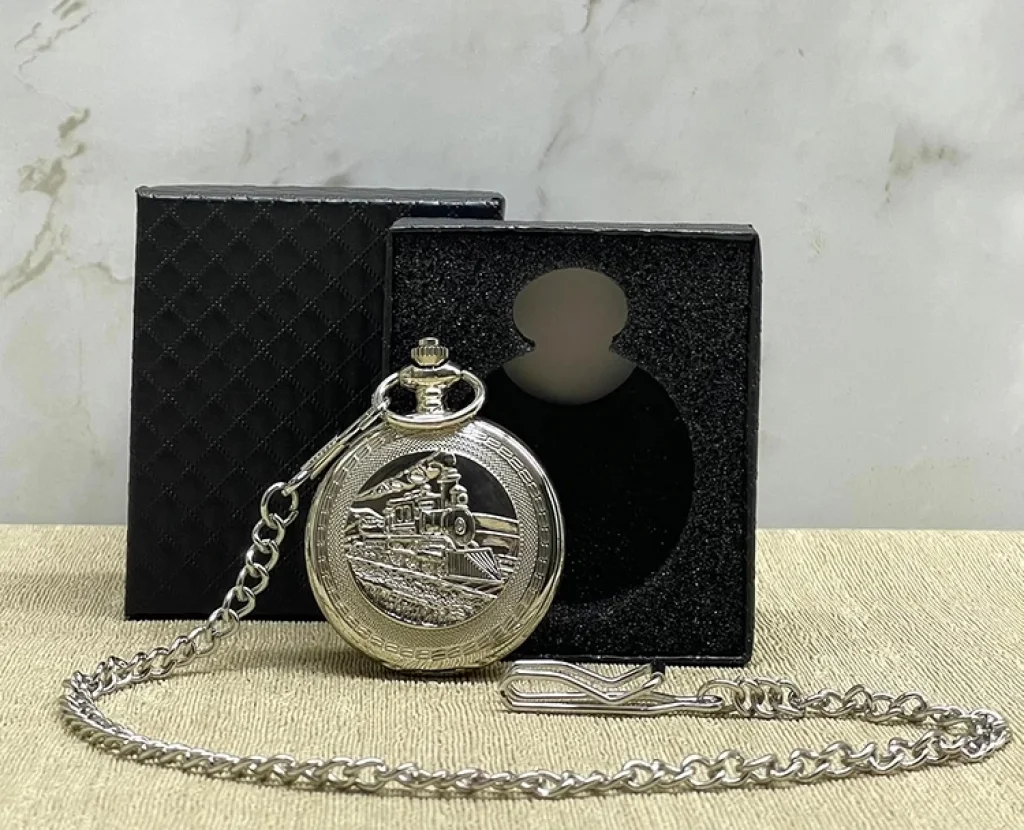 ÖZEL KUTULU TREN TEMALI GÜMÜŞ KÖSTEKLİ SAATÜrün ÖzellikleriÖzel kutulu tren temalı gümüş köstekli saat, nostaljik tasarımıyla dikkat çeken zarif bir aksesuardır. 4x5 cm boyutunda olan bu saat, antik tarzda işlenmiş gümüş renkli metal gövdesiyle dayanıklı ve şık bir kullanım sunar. Saatin ön yüzünde yer alan tren figürü koleksiyonluk bir değer taşırken, zincirli yapısı sayesinde kolayca taşınabilir. Özel kutusu ile gönderildiği için hediye seçeneği olarak da öne çıkar ve hem günlük kullanımda hem de koleksiyonlarda yerini alır.Paket İçeriği1 adet Özel Kutulu Tren Temalı Gümüş Köstekli Saat