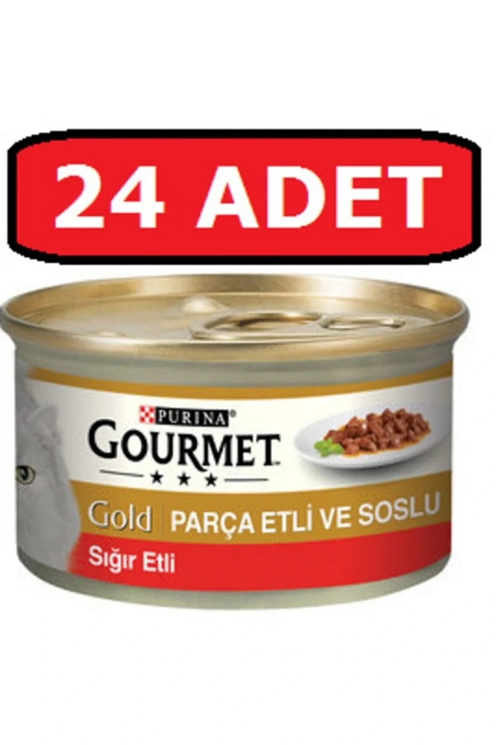İncelemiş olduğunuz ürünün satış fiyatını satıcı belirlemektedir. ; Purina gourmet gold parça etli sığır kedi konservesi 24 adet 85 gr yaş mama ; Pro Plan Gourmet Gold Parça Etli Soslu Sığır Etli Kedi Konserve Maması 85 gr Kediler için, Parça etli gerçek etle özenle hazırlanmış, pürüzsüz, Sığır etli konserve kedi mamasıdır. ; Yedirme miktarı : ; Gourmet Royal Gold Sığır Etli Kedi Konserve Maması aktivite seviyeleri normal olan yetişkin kediler&n 1-7 yaş için tasarlanmıştır.Erişkin kedilerin günlük gereksinimleri dikkate alınarak tüm ve biyolojik olarak aktif besin maddeleri için tamamen dengeli yiyecek olarak tasarlanmıştır. ; Besleme özellikler ; Protein miktarı içeriği % 7,5-12 dir. Optimum kas korumak için gereken miktardır ve konservede bu miktara göre hazırlanmıştır. ; Yağ miktarı % 3,7-7,0 arasındadır ve mu miktar bir kedinin günlük enerjisini karşılamaya yeter miktardır. ; Sağlıklı ve güçlü dişler ve iskelet için mineraller, kalsiyum içerir. ; İyi sindirim için gerekli olan selüloz proplan Gourmet konservelerde yeteri kadar kullanılmıştır. ; Taurin Sağlıklı kalp ve iyi görme için gerekliği bilinmektedir.Optimal gereksinimi karşılamak için konserveye katılmıştır. ; İçindekiler : ; İşlenmiş et ve et ürünleri, Sığır eti eti % 4, bitkisel protein özü, mısır, tarafından balık ve balık yan ürünleri, mineraller, bakır sülfat bakır / kg 1.1 mg yan ürünleridir. Besin içeriği: Ham protein 10, ham yağ 2.3 Ham kül 1,7, ham selüloz 0,5 Vitamin C: / kg D3 vitamini 1110 IU: 140 IU / kg E vitamini alfa tokoferol : / kg 10 IU. ; Beslenme Tavsiyesi: ; 4 kg vücut ağırlığına kadar olan yetişkin kediler için, iki ayrı öğün olarak günde 3 - 4 kutu ile beslenmesi tavsiye edilmektedir. ; Hamile ve süt veren kediler için, yiyebildiği kadar verilmesi tavsiye edilmektedir. ; Oda sıcaklığında servis yapın fabrika seri numarası ve kayıt numarası kutu altındadır ne kadar tazeliğini korur ; Ağzı açıldıktan sonra buzdolabında saklayınız. İki ayrı öğünde günde 3-4 kutu ile besleyiniz. Taze içme suyunu daima mamanın yanında bulundurunuz. ;
