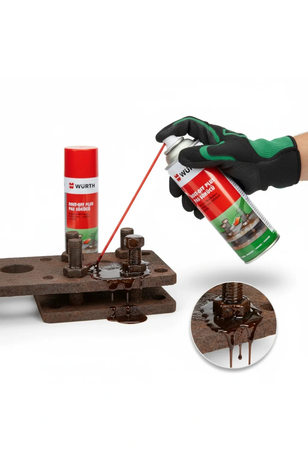 WURTH PAS SÖKÜCÜ YAĞLAYICI SPREY ROST OFF PLUS 400 ML Yeni katkı teknolojili ( O M C 2) ve yağlama özellikli, yüksek kaliteli pas sökücü.; ; Dar alanlara nüfuz etme özelliğine sahiptir.; ; Zor alanlara sızma bu sayede üstün pas sökme ve giderme özeliğine sahiptir.; ; Kimyasal sıvı olarak etkin M O S 2 içeriğine sahiptir.; ; M O S 2 içeren gres yağlama maddelerin aksine O M C 2daha büyük bağlarda yapısından ödün vermez.; ; Sürtünmeyi asgariye indirir.; ; Çok iyi yağlama etkisi özelliği vardır, bu sayede yüzeylerdeki korozyonu engeller Bağlantılar sürekli korozyon korumalı olarak hazır halde bulunur.; ; Korozyon koruma katkıları sayesinde çok iyi korozyon koruma sağlar.; ; Sonradan oluşacak korozyon oluşumlarına karşı koruma sağlar.; ; Reçine ve asit içermez.; ; Silikon içermez.; ; Lastik ve plastiğe dosttur.; ; Kullanım yerleri / Uygulama Otomobil, ağır vasıta, tarım ve iş makineleri, aletler, makineler v.; s.; ; KULLANIM ŞEKLİ Uygulama yapılacak yüzeylere sıkarak kısa bir süre etki etmesini bekleyin.; ; Zor durumlarda bu işlemi tekrarlayın, gerekirse etki etme süresini uzatın.; ; MESAİ SAATLERİMİZ 08:30 - 18:00 DİR.; ; MESAİ SAATLERİNDE SORU CEVAP VE CHAT BÖLÜMÜNDEN SORULARINIZ EN KISA SÜREDE CEVAPLANACAKTIR.; ; .; ; Hafta içi Saat: 15:00 e kadar verilen siparişler AYNI GÜN ÜCRETSİZ KARGO ile gönderilir.;