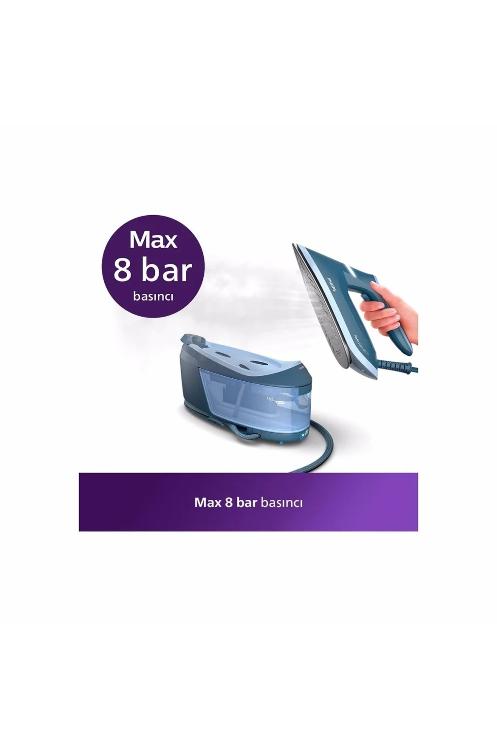 2400 watt güce sahip güçlü bir motoru olan Philips ütü, yüksek güç ile ütünün hızlı ısınmasını ve buhar üretimini sağlar.; OptimalTEMP teknolojisi olan Philips Steamglide ütü, ütüleme işlemi sırasında herhangi bir kumaş türüne geçiş yapmak için sıcaklık ayarına gerek kalmaz.; Otomatik kapanma ütü özelliği sayesinde cihaz, uzun süre kullanılmadığında otomatik olarak kapanır.; Özel bir kireç önleme sistemi kullanan Philips Perfectcare ütü, cihazın ömrünü uzatır ve ütüleme performansını korur.; 1.8 litre su kapasitesine sahip olan Philips Perfectcare 2400 watt ütü, uzun süreli ütüleme işlemleri için idealdir ve tek dolum ile uzun süre kesintisiz ütü yapmaya olanak tanır.; Buhar istasyonlu ütü, ütüleme performansını önemli ölçüde artırır.; Şok buhar kazanlı ütü, kumaşların üzerinde zorlu kırışıklıkları ve katlanma izlerini daha etkili bir şekilde gidermek için güçlü bir şok buhar üretir.; Philips 8 bar kazanlı ütü, güçlü buhar üretimi ve hızlı ütüleme sağlayarak hissedilen deneyimini üst seviyeye taşır.; Philips sürekli buhar veren ütü, düşük enerji tüketimi ile çevre dostu bir modeldir.;