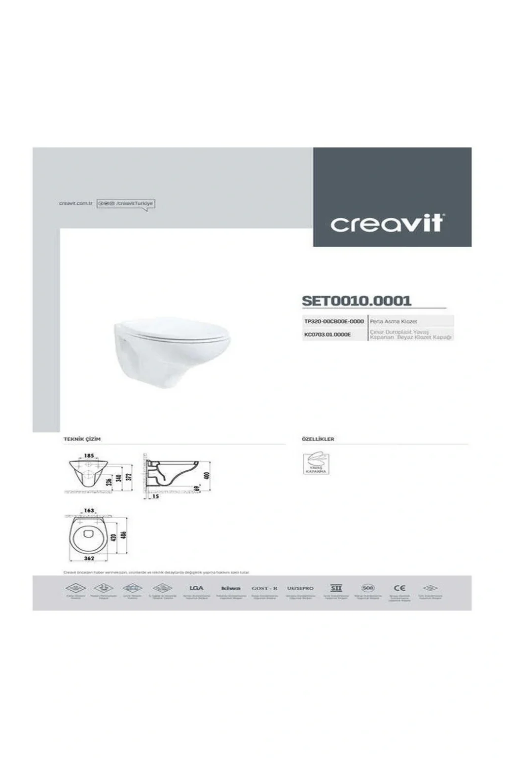 Renk:Beyaz;Materyal:Seramik;Marka:Creavit
