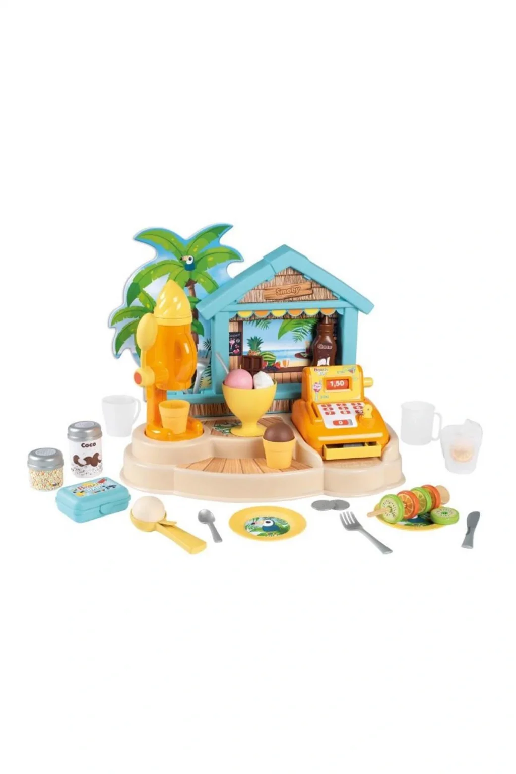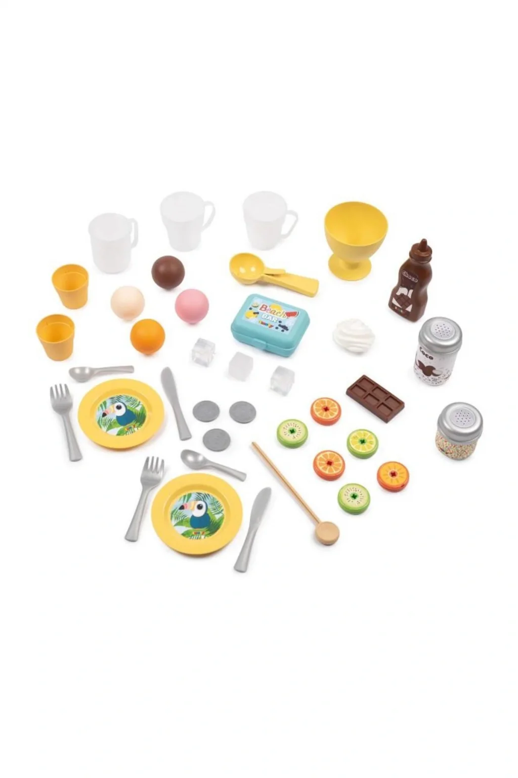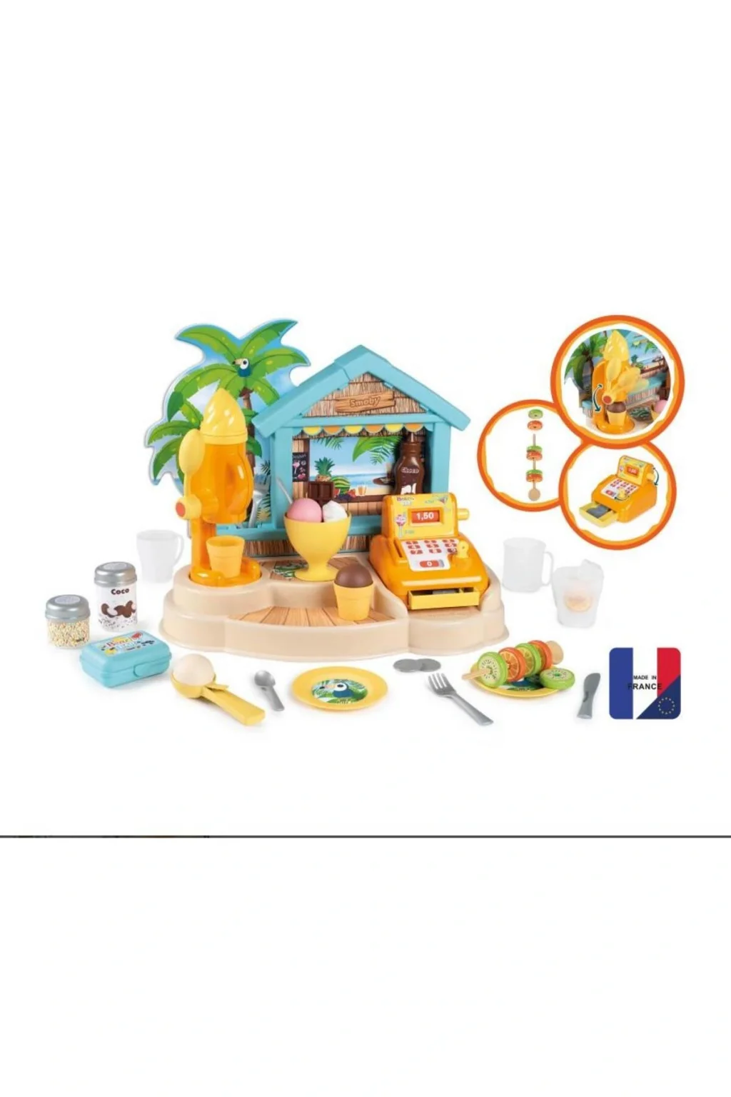 Smoby Plaj Cafe Oyun Seti 310545 Smoby Beach Cafe' ye hoş geldiniz! Bu cafede yaz güneşinin tadını çıkaran çocuklar çok mutlu! Çünkü sadece harika Karayip havası değil, aynı zamanda lezzetli dondurma ve kokteyller de var.; En büyük kreasyonlar dondurma makinesi ile oluşturulabilir, ödeme kasada yapılır.; Siz de bir şeyler içmek ister misiniz? Meyve ve buz küplerinden oluşan bir kokteyl mi? Neredeyse bitti! Kapsamlı aksesuar yelpazesi arasında bardaklar, buz küpleri, tabaklar ve çatal bıçak takımı, yapıştırılacak meyve şişleri, dondurma kaşıkları, dondurmalar, tatlılar, waffle'lar, oyun paraları ve bir yemek kutusu bulunur.; Fransa'da üretilmiştir.; Ürün boyutları: 44,5 x 26,6 x 35 cm.; 3 yaşından büyük çocuklar için uygundur.
