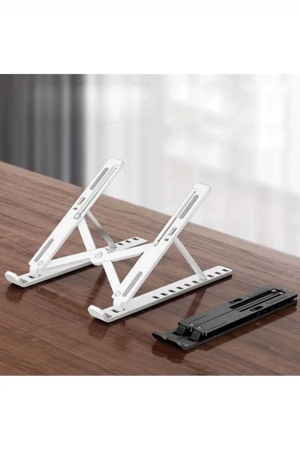 Plastik Katlanabilir Ayarlı Dizüstü Laptop Standı; Katlanabilir Ayarlanabilir Dizüstü Laptop Standı Dizüstü bilgisayar standı 10 ila 15,6 inç arasındaki neredeyse tüm dizüstü bilgisayarlarla uyumludur 30 kg ağırlığa kadar dayanıklıdır Yüksekliğini dilediğiniz gibi ayarlayabileceğiniz 6 seviyesi bulunmaktadır Kullanıcı dostu tasarıma sahiptir Dizüstü bilgisayarınız için daha fazla güvenlik elde etmek amacıyla kaymaz silikon pedler bulunmaktadır Katlandığında 9,45*1,73 inç boyutuna kadar küçülebilir.