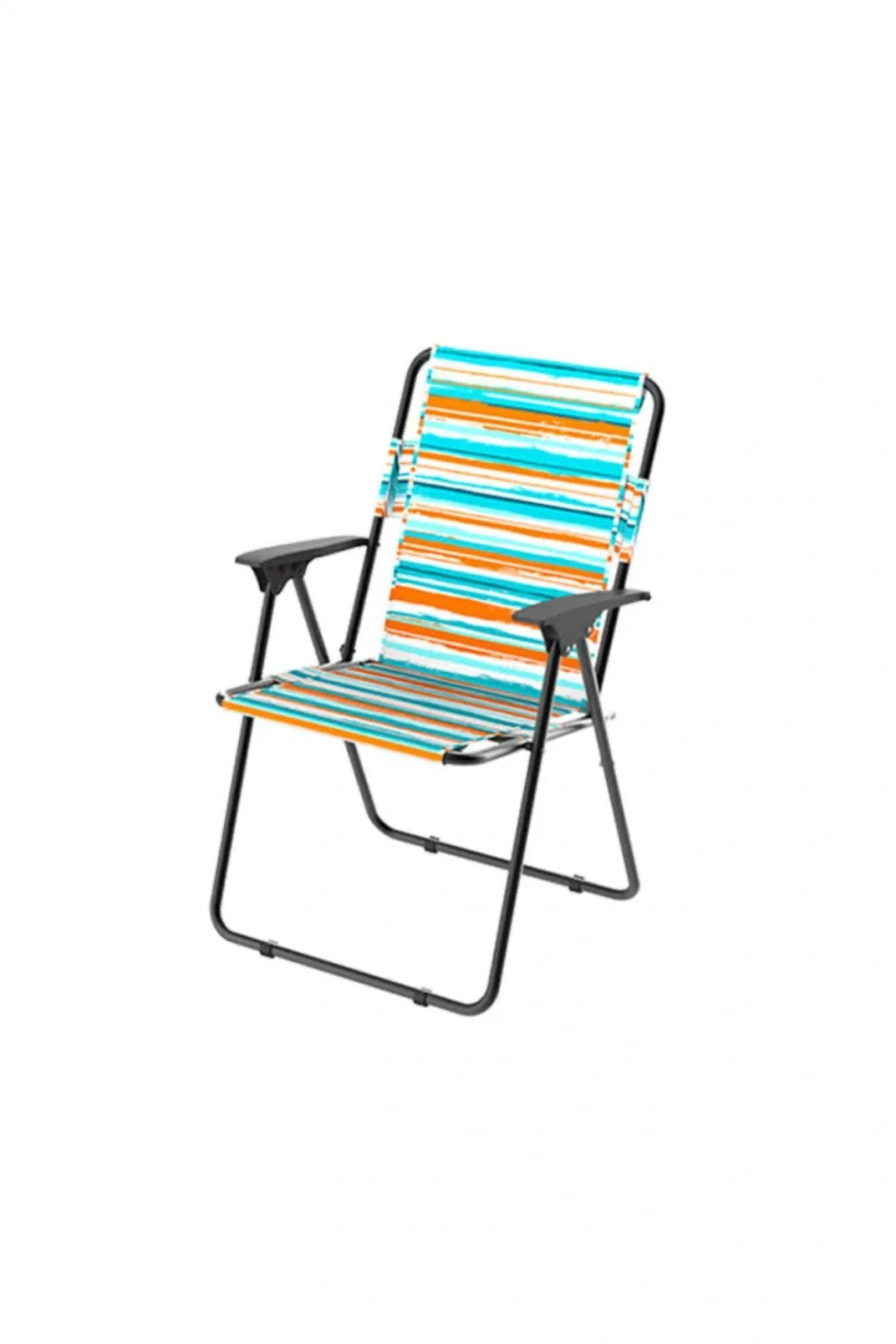 Dayanıklı metal malzeme kullanımı, uzun süreli ve güvenilir kullanım sunar; Katlanabilir modeli sayesinde taşıması kolaydır ve depolama alanından tasarruf sağlar; Renkli çizgi deseni ile estetik bir görünüm kazandırırken, piknik ve kamp gibi açık hava etkinliklerinde şıklığıyla dikkat çeker;