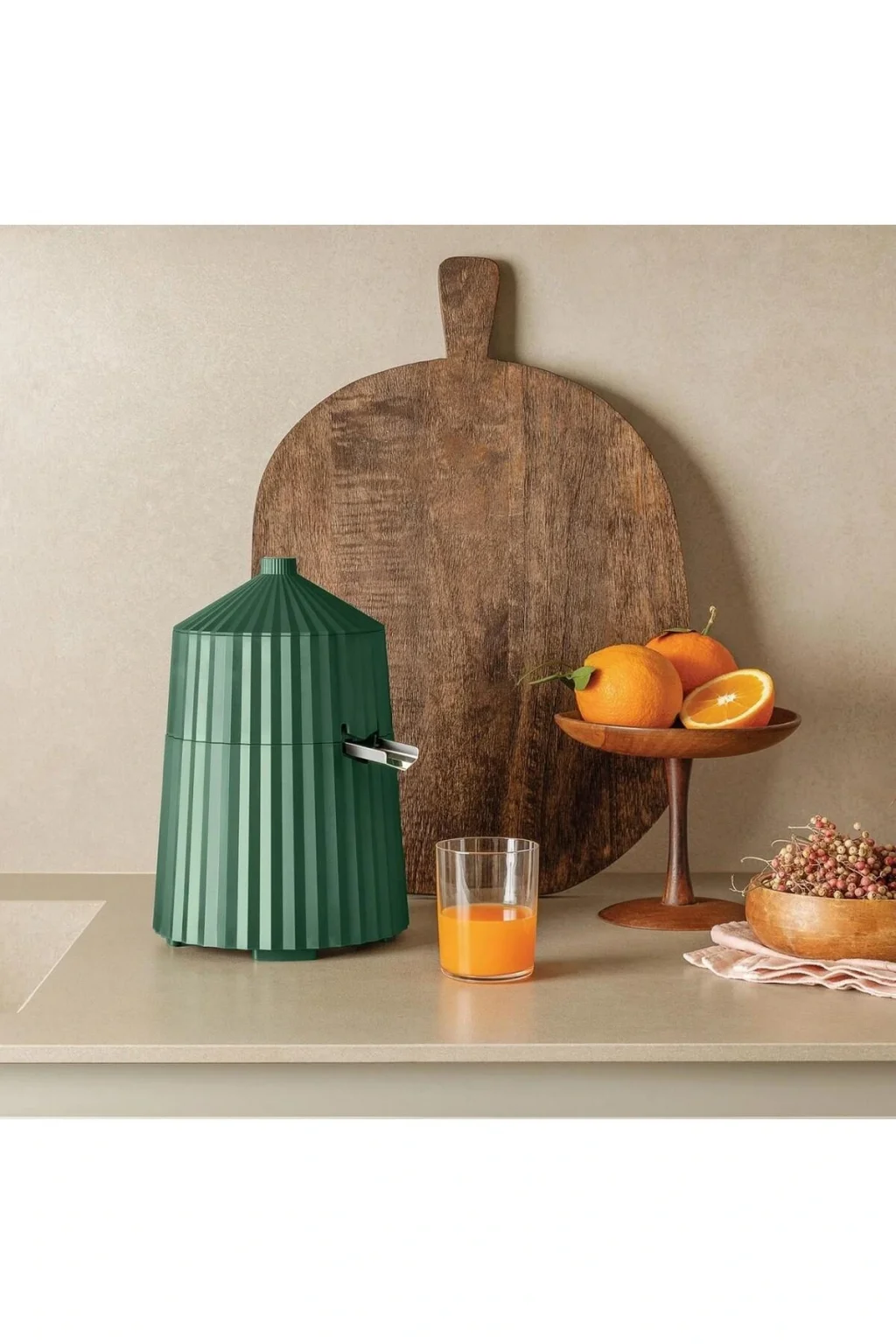 Alessi Plisse Narenciye Sıkacağı Yeşil Alessi Plisse Narenciye Sıkacağı Yeşil, ferahlatıcı bir meyve suyu hazırlamak için ideal bir kullanım sunar.; Michele De Lucchi tarafından tasarlanan bu ürün, farklı malzemelerin ve geometrik şekillerin ilgi çekici bir yan yana gelişini karakterize eder.; Mimarın Alessi için tasarladığı koleksiyona eklenen yeni bir küçük mutfak aleti yüksek teknoloji performansı ve büyüleyici tasarımıyla dikkat çeker.; Alessi Plisse Narenciye Sıkacağı Yeşil, mutfakta zarif bir şekilde tasarlanmış ve mükemmel işlevselliği sunan özel bir üründür.; Yeşil rengiyle modern ve şık bir görünüme sahip olan bu narenciye sıkacağı, meyve sularını hızlı ve verimli bir şekilde hazırlamanız için tasarlanmıştır.; Ürün Özellikleri: Michele De Lucchi tarafından 2020 yılında tasarlanan Plissé elektrikli narenciye sıkacağı, dayanıklı termoplastik reçineden üretilmiştir.; Ürün, tüketici güvenliğini garanti etmek için test edilmiş ve belgelenmiştir.; BPA içermez.; Koni, süzgeç ve kap bulaşık makinesinin üst rafında yıkanabilir.; 2 yıl garanti kapsamındadır.; Kapak, koni, çelik süzgeç, kap, çelik ağız, motor birimi, kablo sargısı ve motor şaftından meydana gelir.; Ölçü: 18,5 cm x 28 cm Malzeme: Dayanıklı termoplastik reçine ve çelik Güç: 72 - 85 W *Kullanmadan önce kullanım kılavuzunu incelemeniz önerilir.; Alessi Hakkında "Hayallerin Fabrikası" olarak adlandırılan Alessi, kurulduğu 1921'den bu yana yaratıcı ifadeleri gerçek nesnelere dönüştürmeyi amaçlamaktadır.; Değişime ve uluslararası gelişime açık olan şirket, aynı zamanda geleneklere ve kendi topraklarının kültürel geçmişine de derinden bağlıdır.; Alessi'nin misyonu, sıradan olanı olağanüstü kılarken estetik, işlevsellik ve kalitenin kültürel ve duygusal bir boyutta dengesini bulduğu, hem büyüleyen hem de şaşırtan günlük nesneler yaratmaktır.; Alessi objelerinin çoğu metallerin soğuk işlemden geçirilmesiyle ve bugün bile Crusinallo, Omegna'daki fabrikada son derece yetenekli ustalar tarafından İtalya'da üretilmektedir.; Tasarım sürecinde endüstriyel üretimin teknolojik karmaşıklığı ile zanaatkârlığa özgü ayrıntılara gösterilen özen arasında sürekli bir arabuluculuk sağlanarak her biri için katı kalite standartları uygulanmaktadır.
