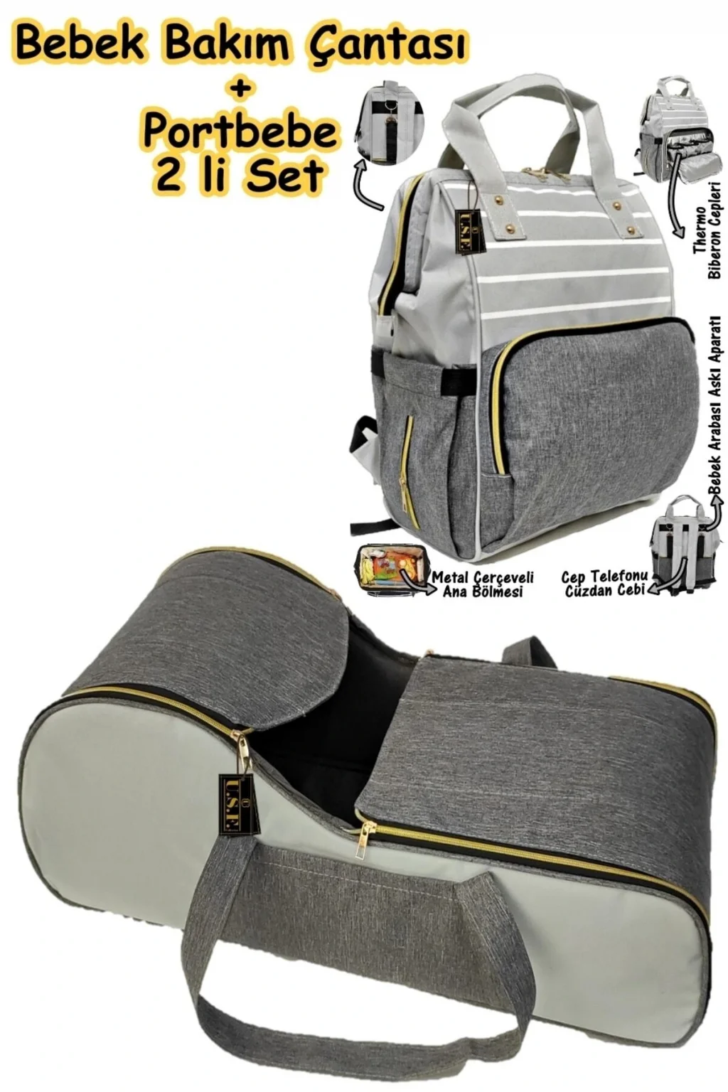 Portbebe özellikleri ; Sağlam ve ortopedik yapısıyla bebeğiniz için hem korunaklı hem de kullanışlı bir üründür. ; Üst kısımda bebeğin yüzünü korumak için fermuarlı bir bölüm bulunmaktadır. ; Yumuşak bir iç kısma sahiptir. ; Etrafı süngerli olup bebeği dışarıdaki etkilere karşı korur. ; Taşımak için uygun uzunlukta ve güçlendirilmiş askıları vardır. ; Bebek sağlığına zararlı hiçbir madde içermez. ; Su sıvı ve rüzgar geçirmez yapıdadır. ; Ölçüler: Uzunluk: 70 genişlik: 30 yükseklik: 33 ; Bebek arabası asma aparatı mevcuttur ; Kaliteli kumaş ve sağlam dikişlerle bebek bakım çantanız ; Çantamızın ana bölümünde 4 adet malzeme gözü ve 1 adet fermuarlı saklama cebi bulunmaktadır ; Çantamızın ön bölümünde 3 adet thermo özellikli biberon gözü (2-4 saate kadar soğuk & sıcak tutabilir) ve 1 adet ekstra cep bulunmaktadır ; Çantamızın sağ tarafında büyük boy biberon cebi bulunmaktadır ; Çantamızın sol tarafında 60/72 li ıslak mendil yerleştirme cebi vardır. ; Çantamızda toplam 14 adet farklı kullanım için cep bulunmaktadır. ; Çantamızın arka kısmında tablet,cep telefonu ve cüzdan saklama için fermuarlı büyük kolay ulaşım cep bulunmaktadır.. ; Su ve sıvı geçirmez kumaştan üretilmiştir. ; Çantamızın hiçbir yerinde bebeğinizin sağlığına zararlı bir madde kullanılmamıştır. ; Silinebilir kumaş ; ölçüler: (yükseklik: 42 cm) x( genişlik: 28 cm) X ( en: 20 cm ) .. ;