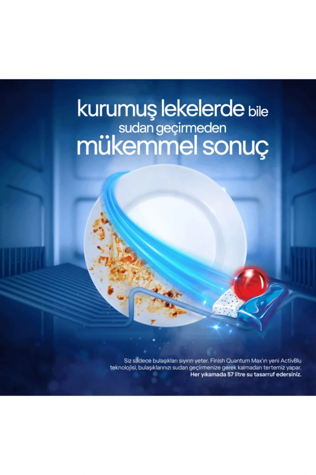 Şimdiye kadarki en güçlü Finish: Yeni Finish Quantum Max! Yeni formülüyle içindeki toz deterjan kurumuş lekeleri bile sudan geçirmeden çıkarır. ; Power jel yağları söker atar , likit powerball mükemmel parlaklık sağlar. ; 3 bölmeli yeni kapsül teknolojisiyle, yeni Finish Quantum Max kolayca çözünür. ; Üstelik daha az kimyasal içerir. ; Maksimum Güç, Mükemmel Parlaklık.;