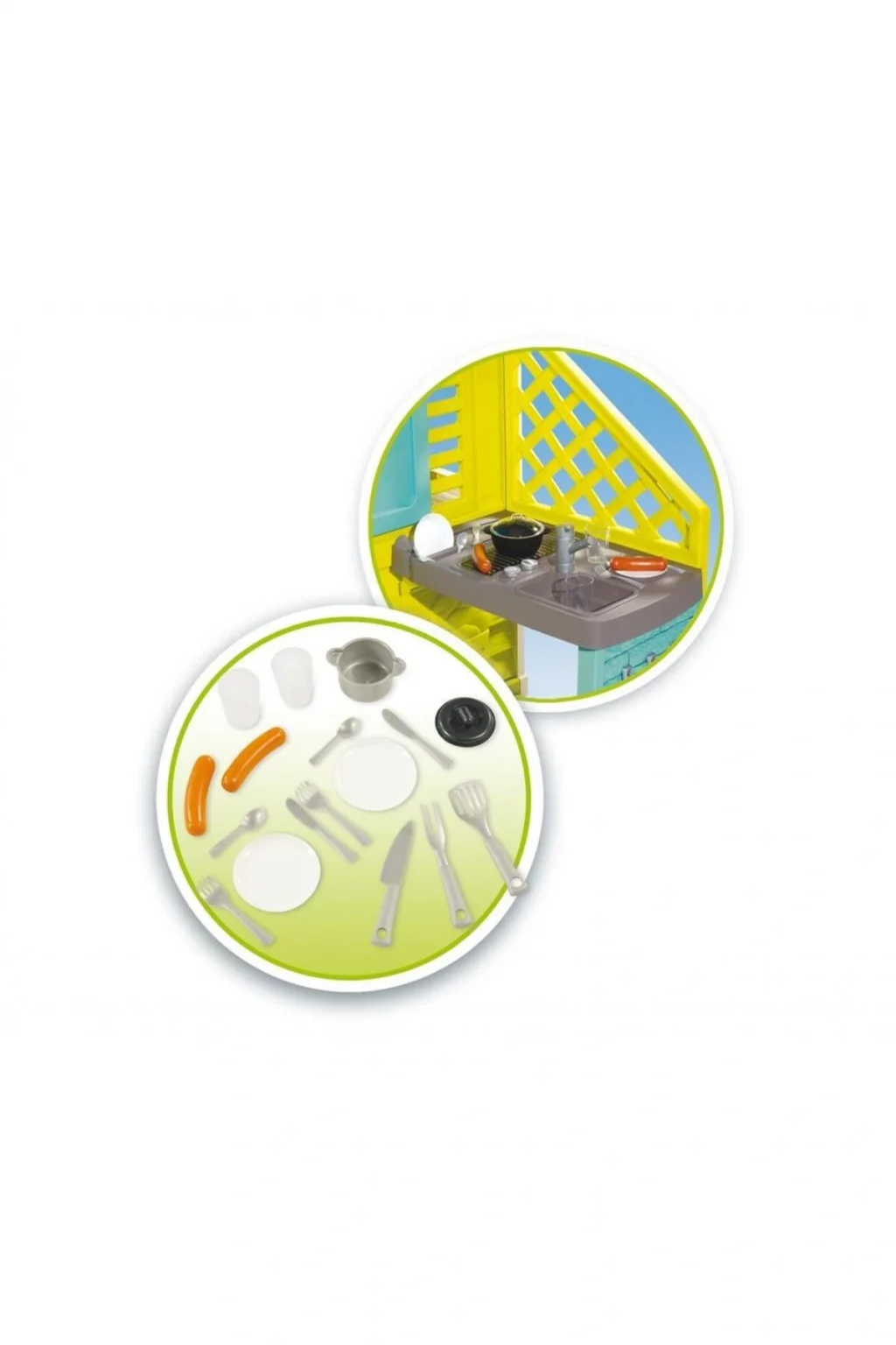 Eksiksiz ve tasarımcı "Pretty Playhouse + Kitchen", çocuklarınıza arkadaşlarıyla oynayabilecekleri geniş bir yüzey sağlar! Mutfağıyla Pretty oyun evinde çocuklarınız kendilerini kolayca hayal edebilecek! Arkadaşlarıyla birlikte hareketlerinizi taklit edecekler! "Izgara" ve onun birçok aksesuarı sayesinde lezzetli yemekler pişirecekler: sosisler, bardaklar, tabaklar, çatal bıçak takımları, .; Güzel güneşli günler geçirmek için her şey! Oyun evi 2 penceresi sayesinde oldukça aydınlıktır, ancak küçükleriniz gölge almak isterse 2 panjuru kaydırmaları yeterli olacaktır! Pratik ve sağlam olan oyun eviniz, anti-UV işlemi ve dayanıklı malzemeleri sayesinde birkaç yıl oyun alanı olarak kullanılacak! Montajı kolaydır.2 yaş ve üzeri çocuklar için - Fransa'da üretilmiştir.